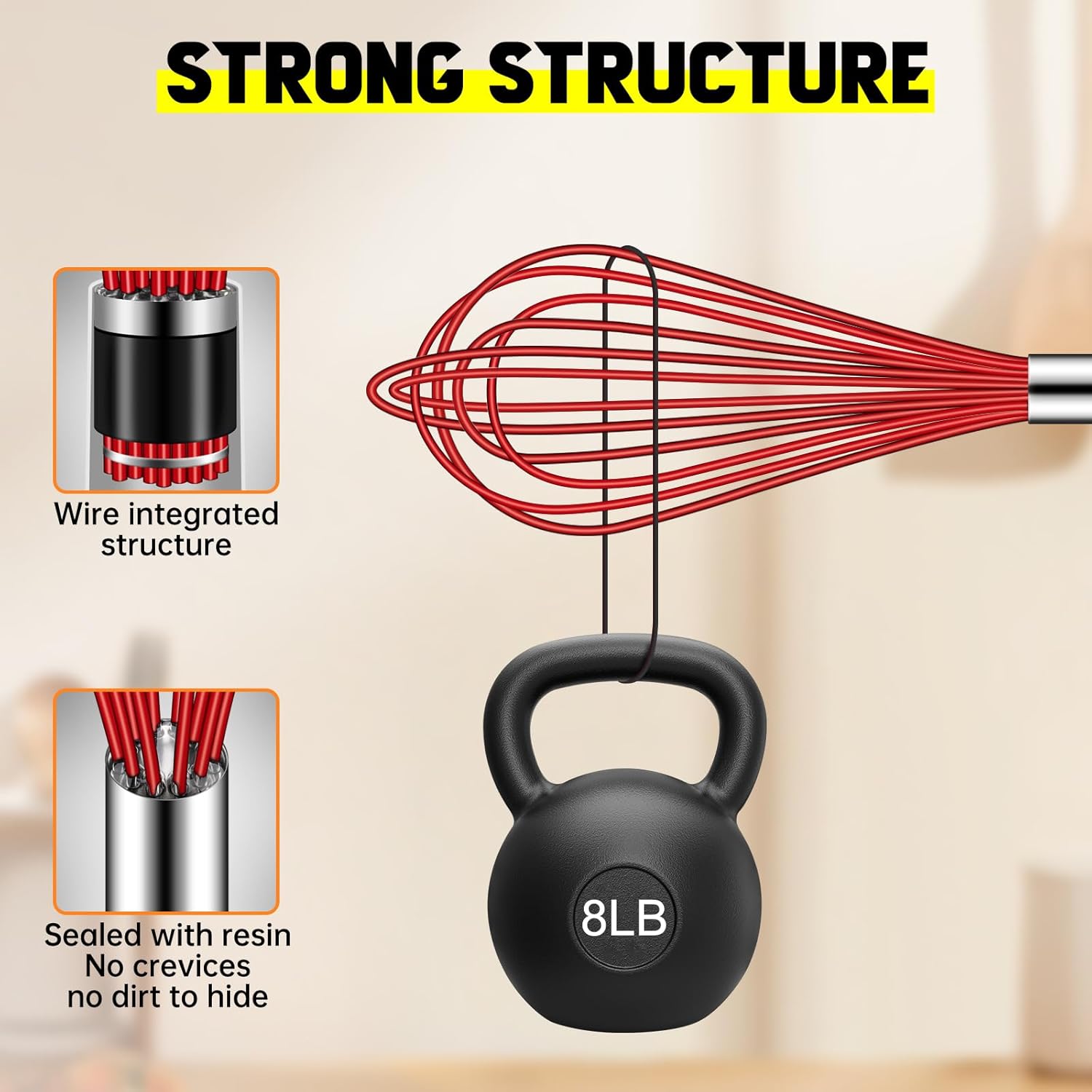 - 484ยบF High Heat-Resistant: Feature BPA free silicone wires. 1.65mm thickened wires coated in 0.3mm soft silicone makes it stronger and more durable. Great for stirring sauces and gravies while heating.