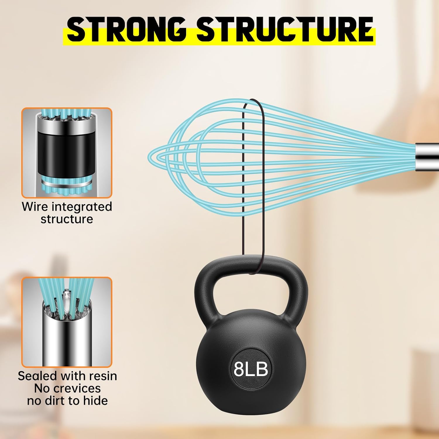 - 484ยบF High Heat-Resistant: Feature BPA free silicone wires. 1.65mm thickened wires coated in 0.3mm soft silicone makes it stronger and more durable. Great for stirring sauces and gravies while heating.