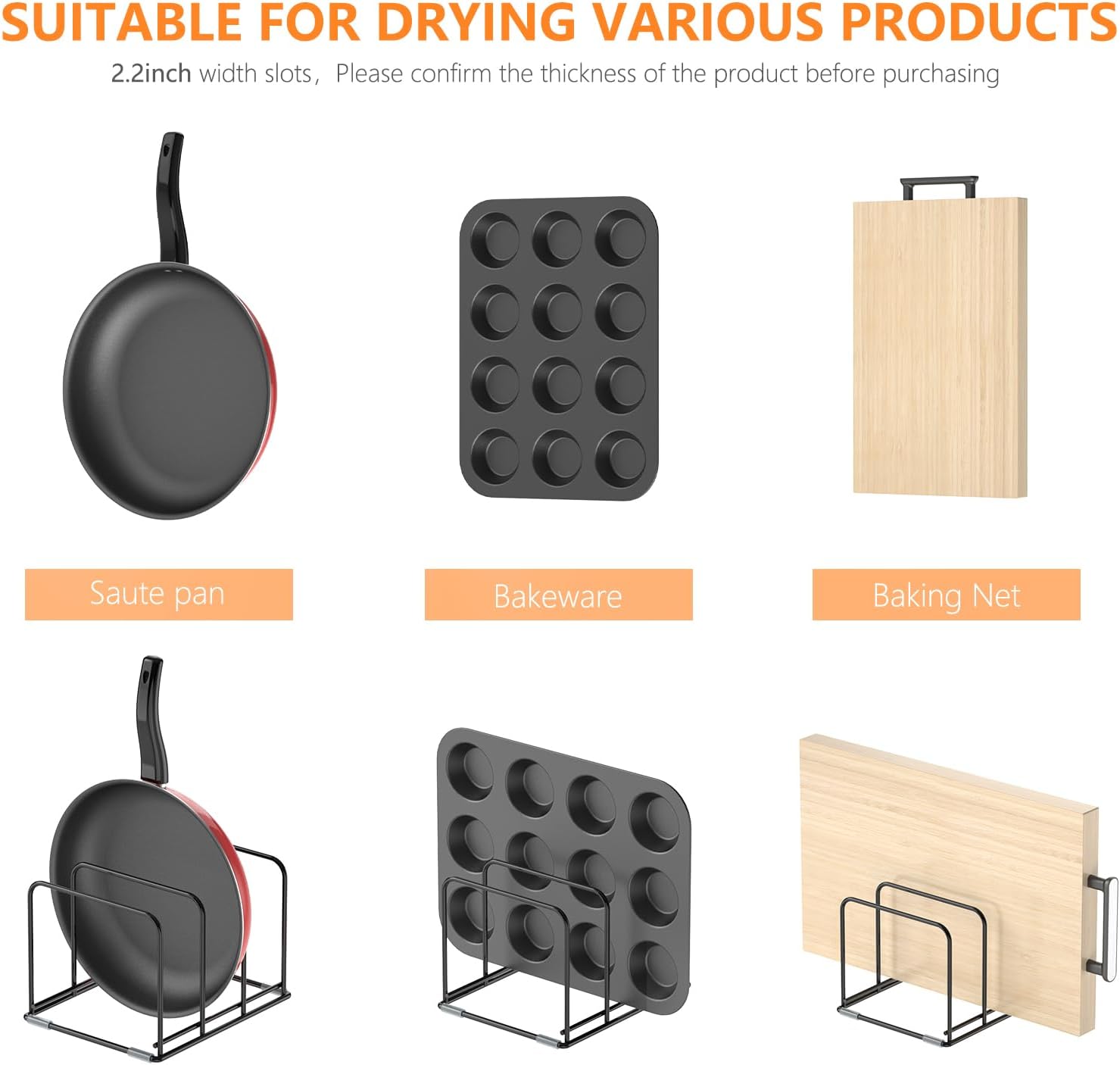 - VERSATILE DESIGN: This rack is designed to hold and organize different kinds of kitchen stuff, can be used to organize cutting boards, bakeware, cookie sheets, pans. It can be also used in your home office to organize office items.
