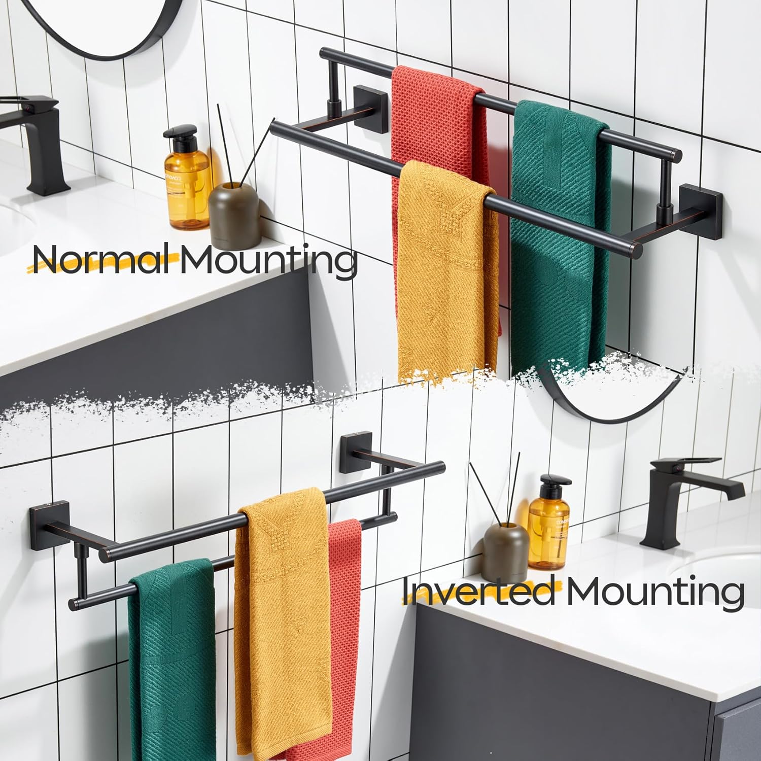 KOKOSIRI Towel Bars 24-Inch Bathroom Towel Holder Oil Rubbed Bronze Bath Towel Rails Racks Wall Mounted Stainless Steel B5009ORB-L24