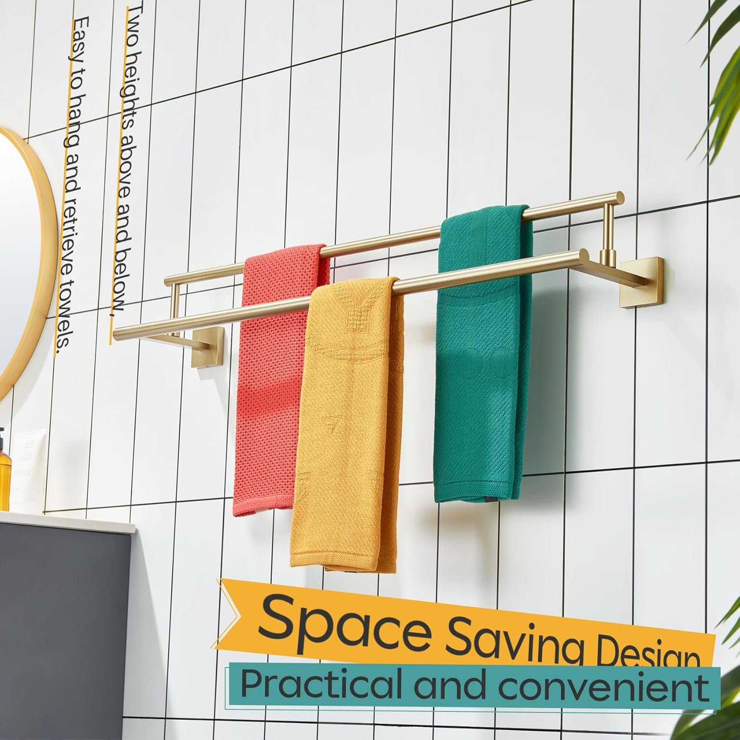 - ◄ PREMIUM MATERIAL ► KOKOSIRI Double Towel Bars made of SUS304 Stainless Steel and features an all-metal design using high-grade steel to resist rust and corrosion from daily use. For your health, all the materials we use are the highest quality and harmless. You can rest assured to use all of our products