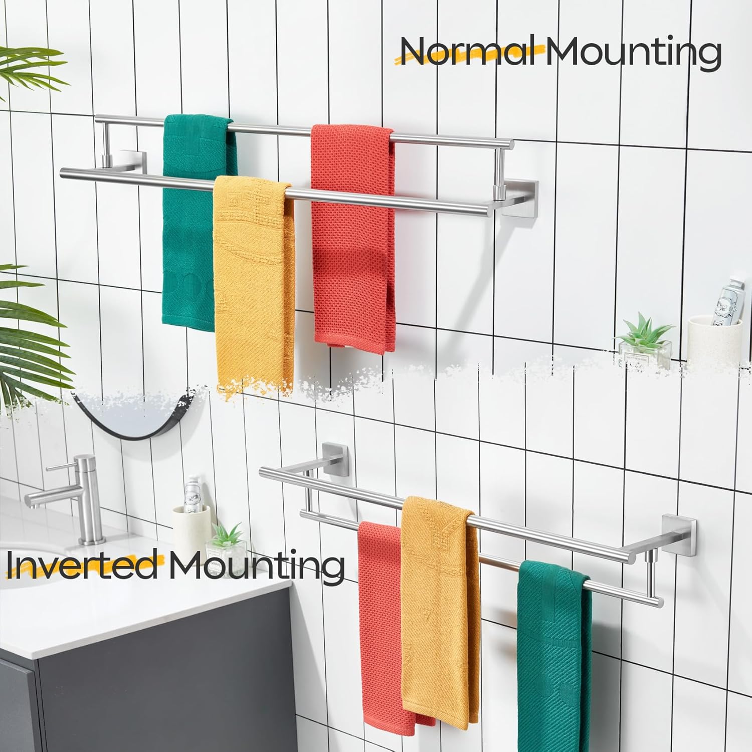 - ◄ PREMIUM MATERIAL ► KOKOSIRI Double Towel Bars made of SUS304 Stainless Steel and features an all-metal design using high-grade steel to resist rust and corrosion from daily use. For your health, all the materials we use are the highest quality and harmless. You can rest assured to use all of our products