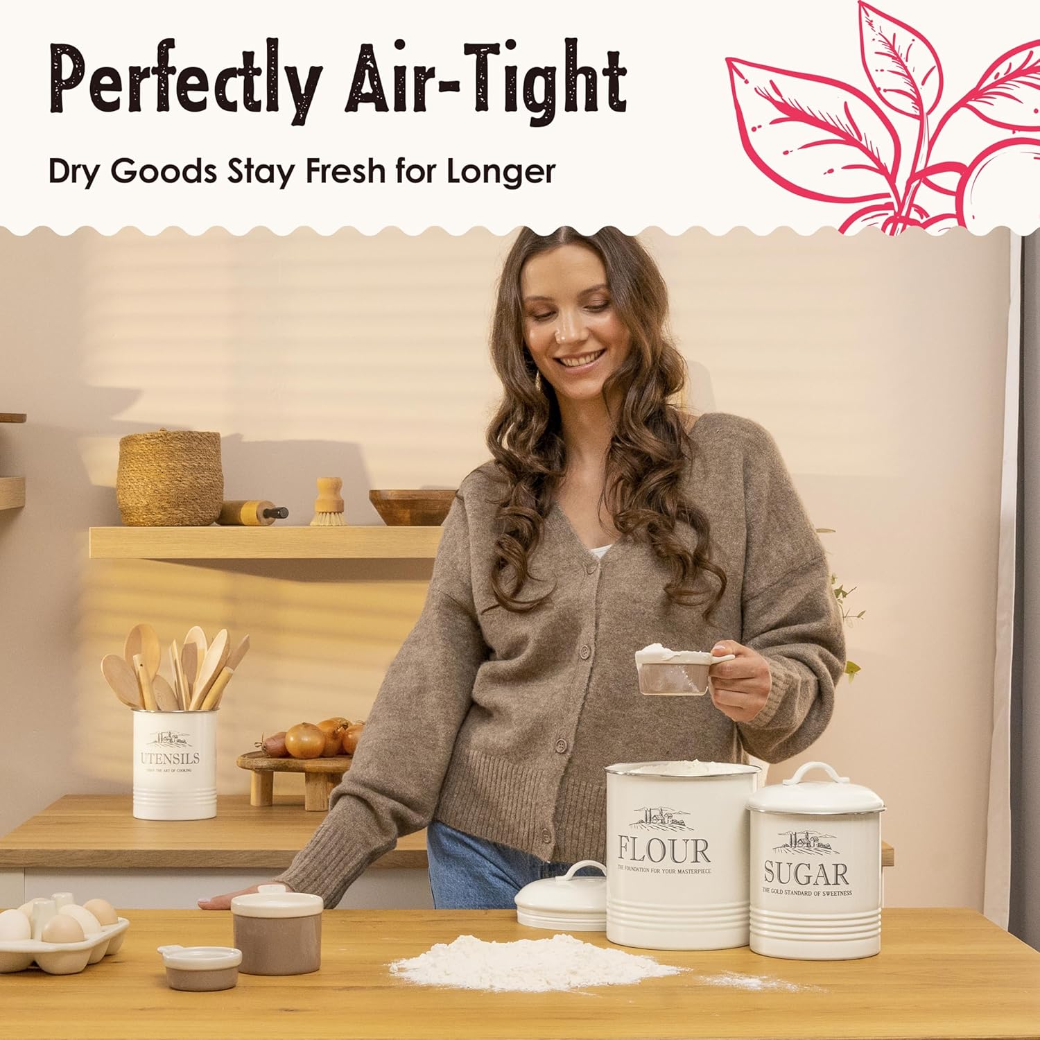 - A Gift You Can’t Miss With: Impress your loved ones with unique farmhouse canisters and utensil holder for countertop they’ll fall in love with; Practical and long-lasting vintage kitchen decor they can enjoy for years to come