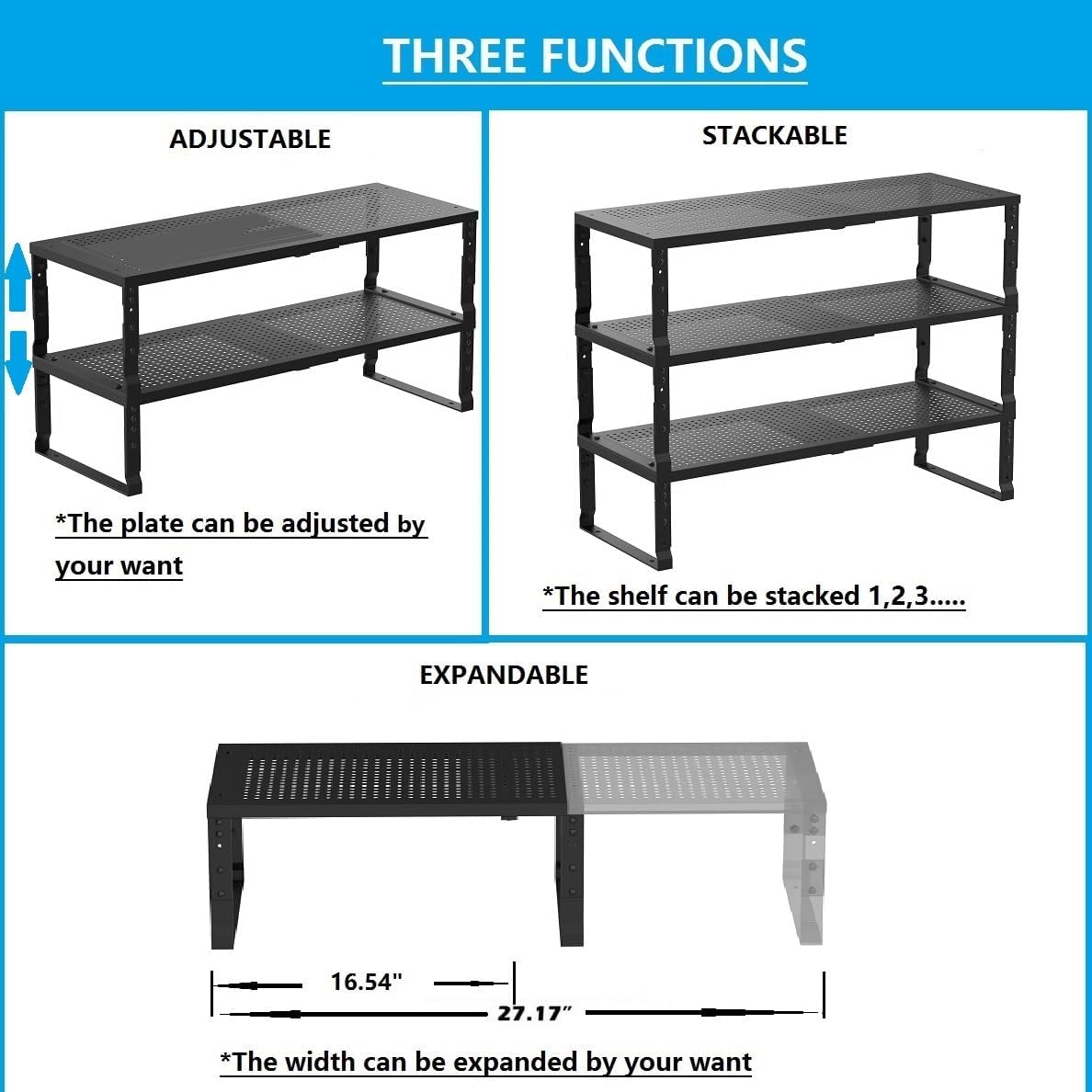 - âăFlexible retractable design (Expandable & Adjustable)ăThis kitchen shelf uses a retractable design, which can be freely adjusted according to the size of the kitchen space and personal needs. Whether it is a narrow corner or a spacious storage room, it can be easily adapted to make the most of every inch of space.(10.1"D x 16.54"W~26.38"W x 6.22"HïŒ