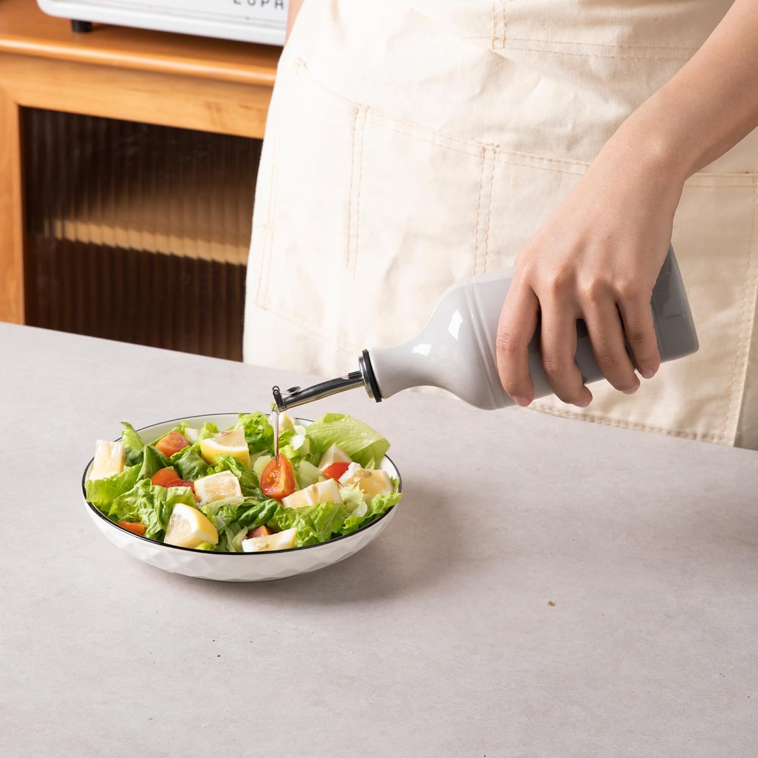 Sweejar Ceramic Olive Oil Dispenser Bottle, Opaque Oil Cruet Protects Oil to Reduce Oxidation, Suitable for Storage Vinegar, Coffee Syrups & Other Liquids, Pack of 1, 15.5 Fl Oz (Gradient Fog Gray)