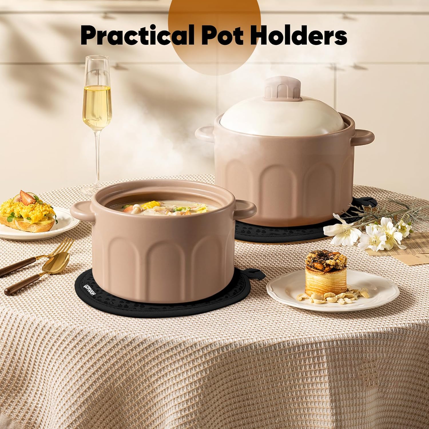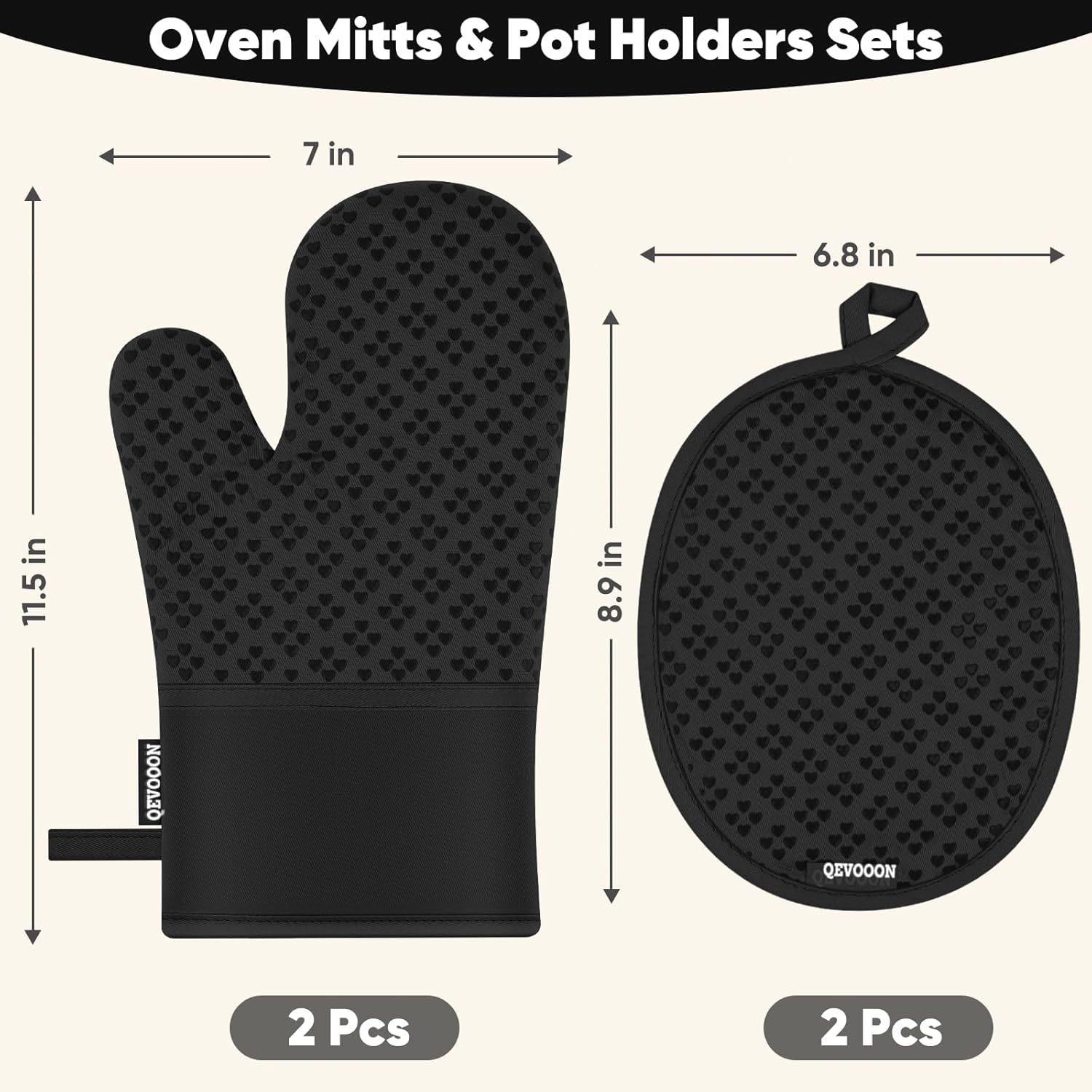 Oven Mitts and Pot Holders 4 Sets, Heat Resistant 500 ℉ Oven Mitt and Pot Holder,Oven Glove&Potholders with Non-Slip Silicone Surface,Kitchen Essentials for Cooking/Baking/BBQ-Black