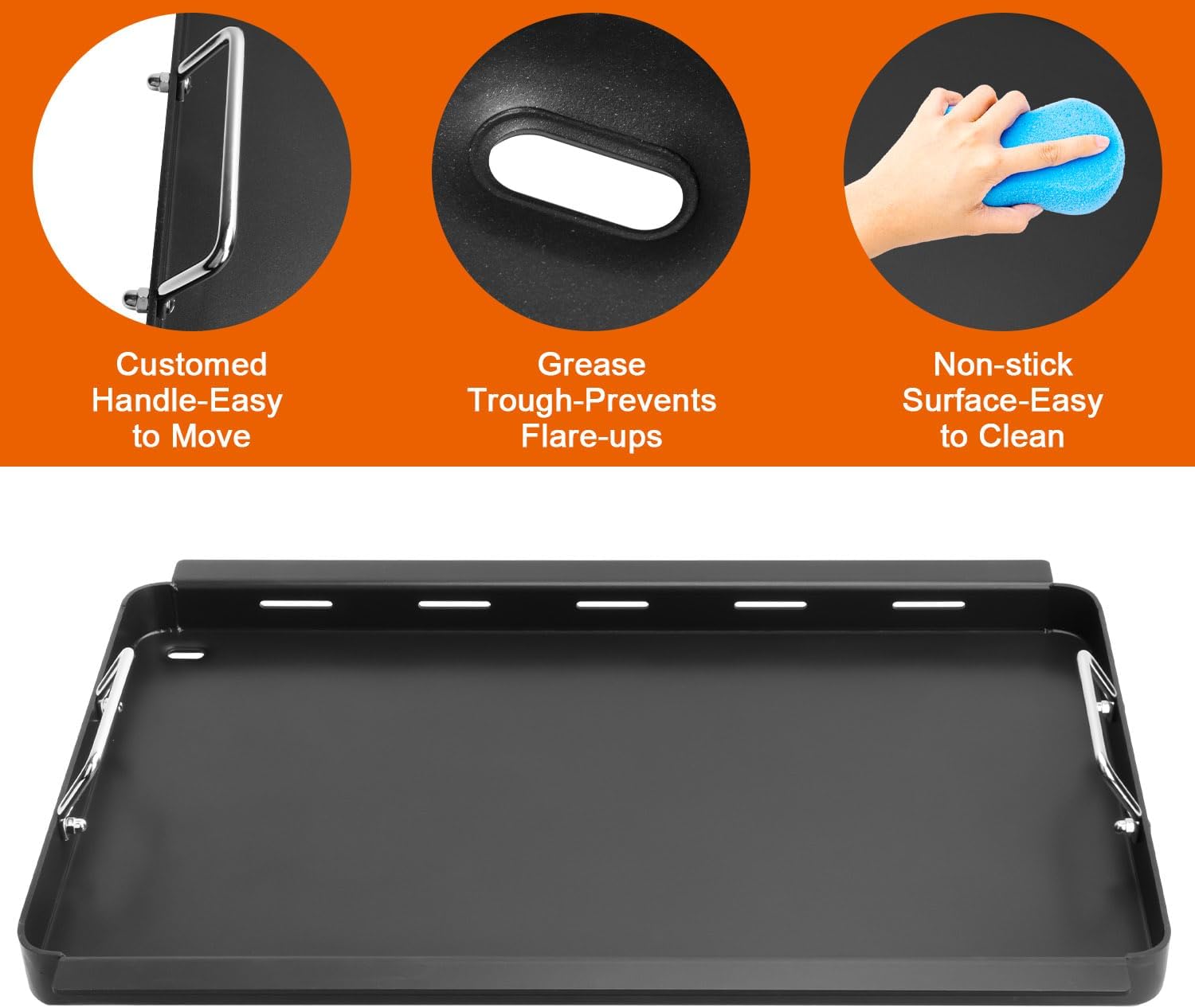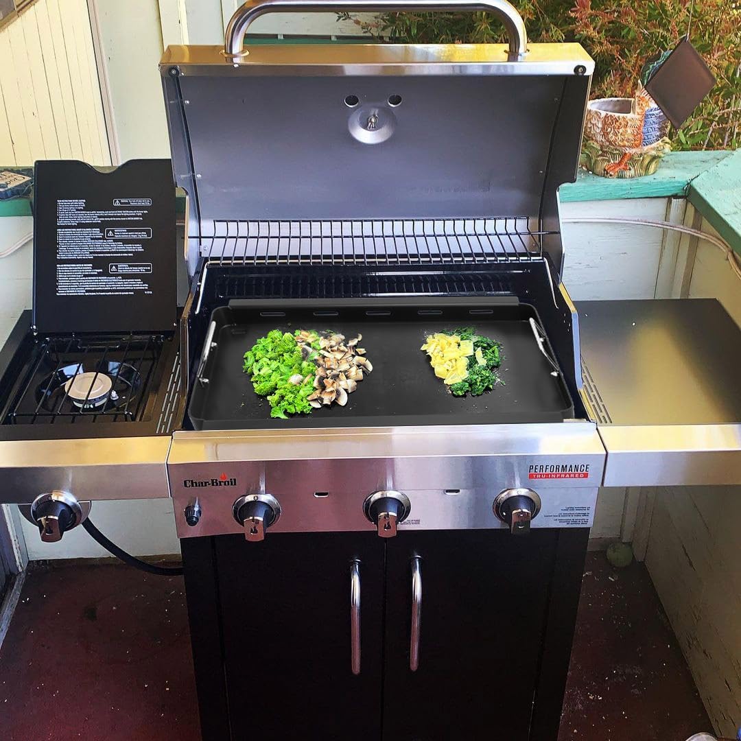 - 【Spacious Cooking Area】With dimensions of 17 x 20.6 inches, this griddle provides ample space for cooking a variety of foods such as steaks, pasta, vegetables, and more, enhancing your barbecue experience. Be sure to check and compare the size of your grill before making a purchase.