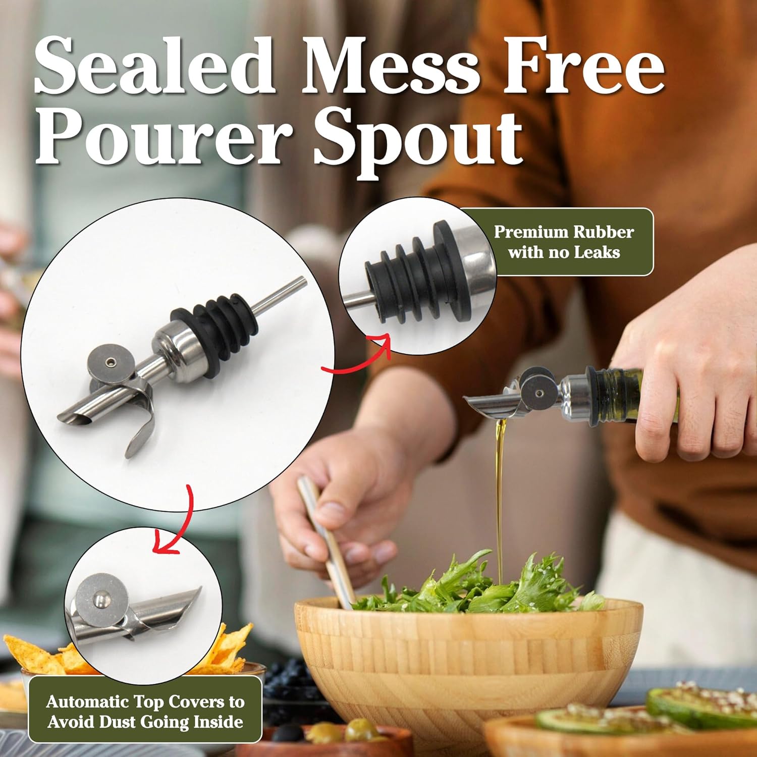- ✔️ EASY AND CONVENIENT - Kitchen oil dispenser bottle for home or restaurant is designed for easy and mess-free pouring, These olive oil bottles automatically opened when pouring down and closed when pouring up vertically without manual closing. Free up your hands while you're busy cooking, making it a convenient addition to any kitchen,The easy-to-use spout ensures controlled pouring and helps prevent spills and leaks.