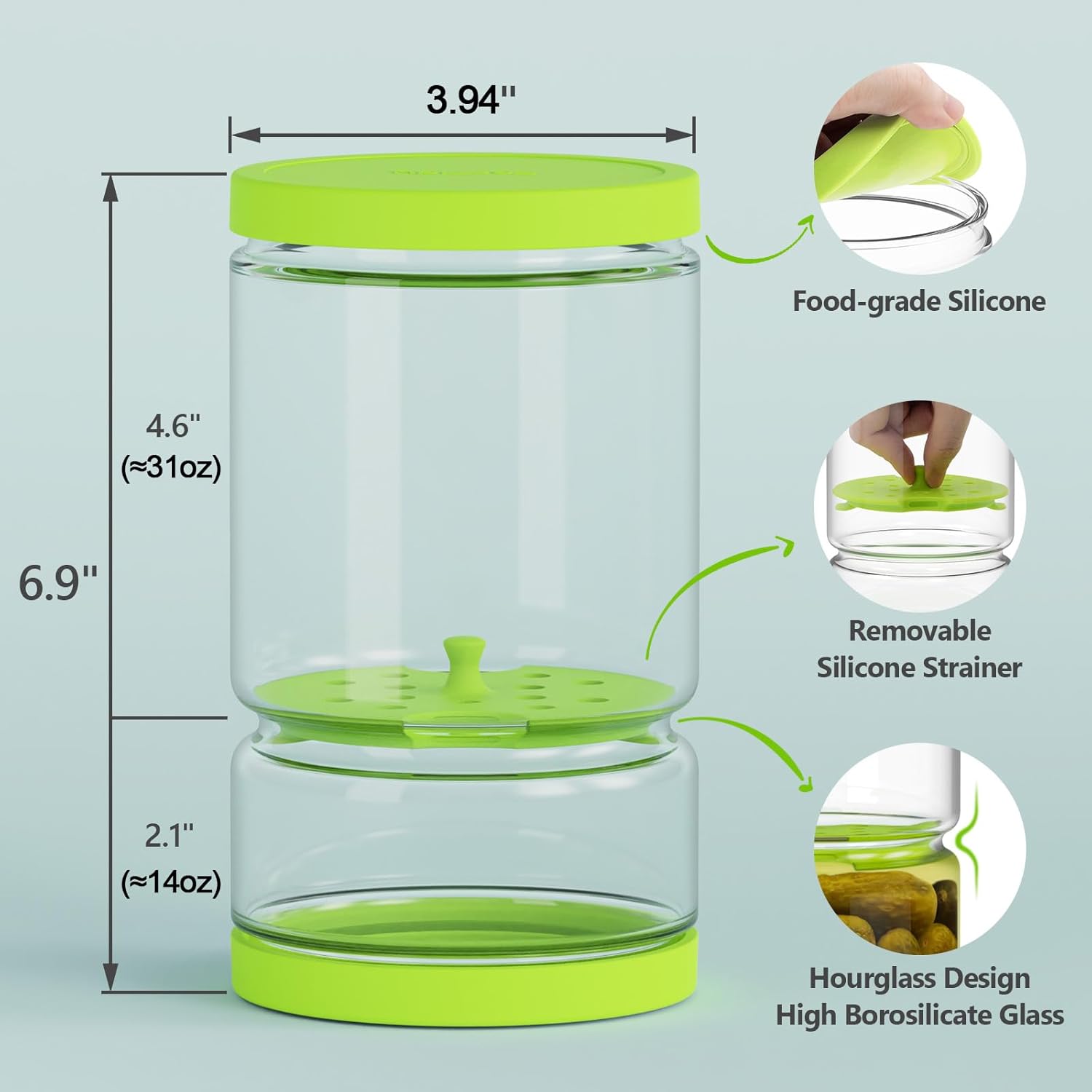 - Effortless Pickle Strainer: Perfect for brining, fermenting, and serving pickles, olives, jalapeños, and cocktail onions. The built-in pickle strainer allows mess-free draining while preserving flavorful brines. Ideal for meal serving and refrigerator organization.