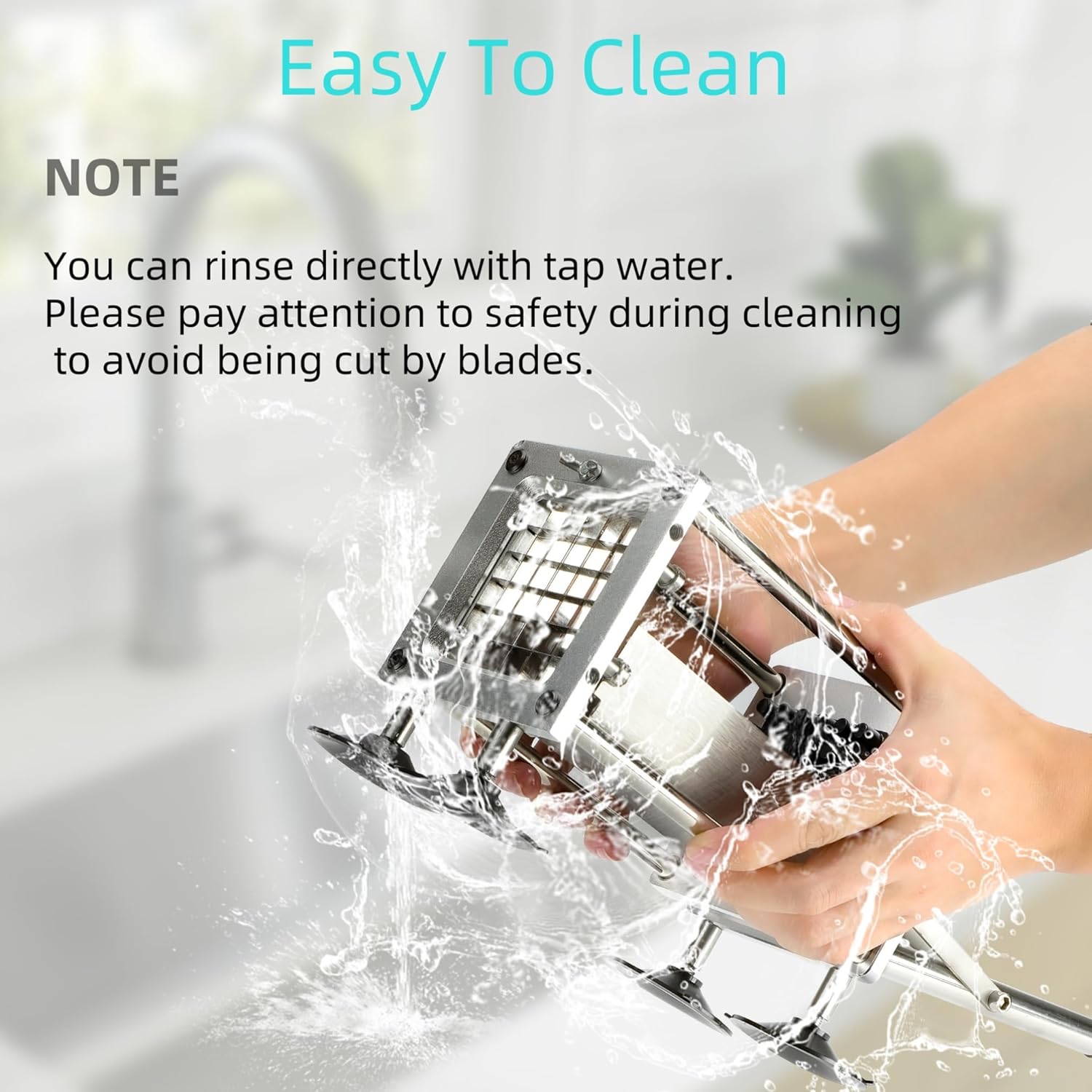 - Two Blades:The package contains both 1/2 inch and 3/8 inch high quality blades to suit different sizes and preferences. You can enjoy the joy of French fries at home!Of course, it can also cut onions, carrots, cucumbers, etc.ATTENTION: The blades are sharp, never touch the side of the blade with your hands.