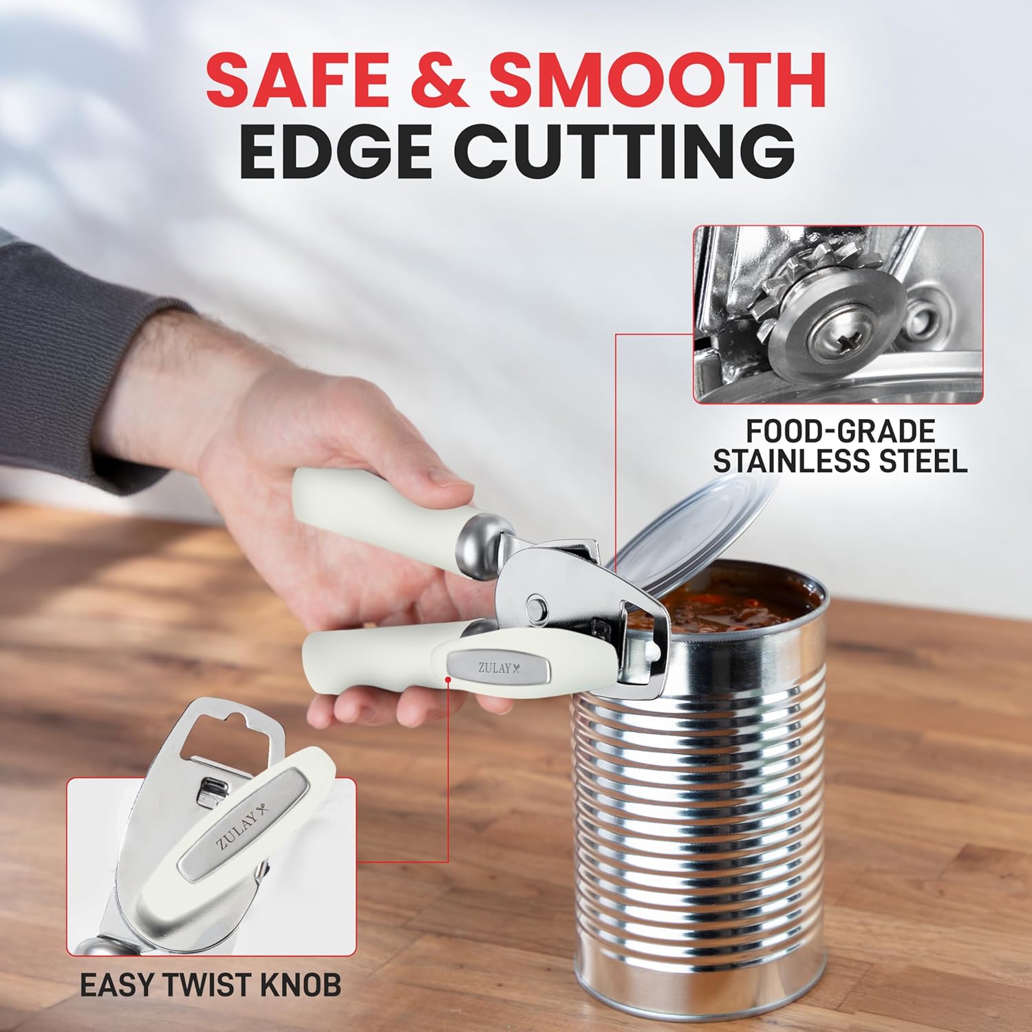 Zulay Kitchen Heavy Duty Stainless Steel Can Opener Manual with Bottle Opener - Rust Proof Manual Can Opener With Turn Knob & Soft Grip Handles