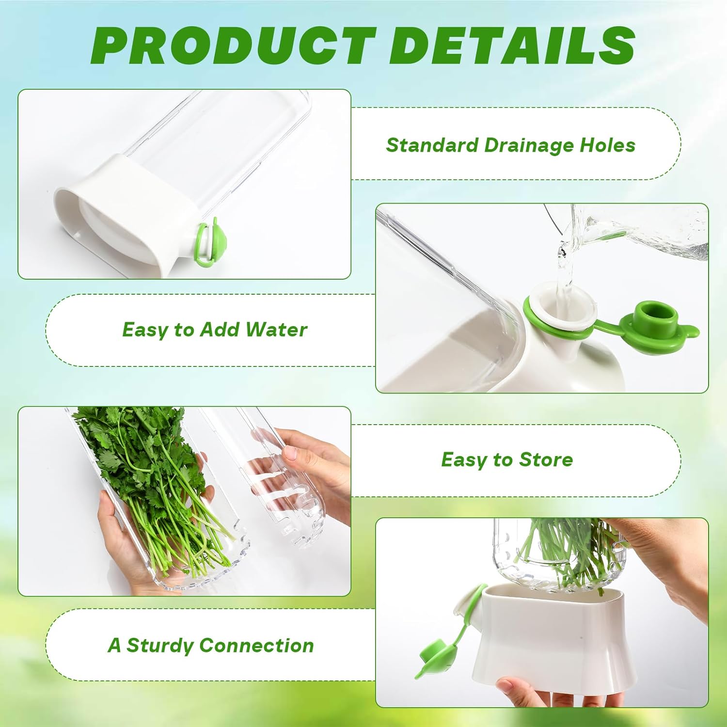 - Preservation Function: this cilantro container has good waterproof integrity, which can fully maintain the humidity of vegetables and ensure the quality of vegetables; It is necessary to immerse the stems in water, do not soak the vegetables, avoid too much water and soak the vegetables for a long time, which will cause the vegetables spoiled