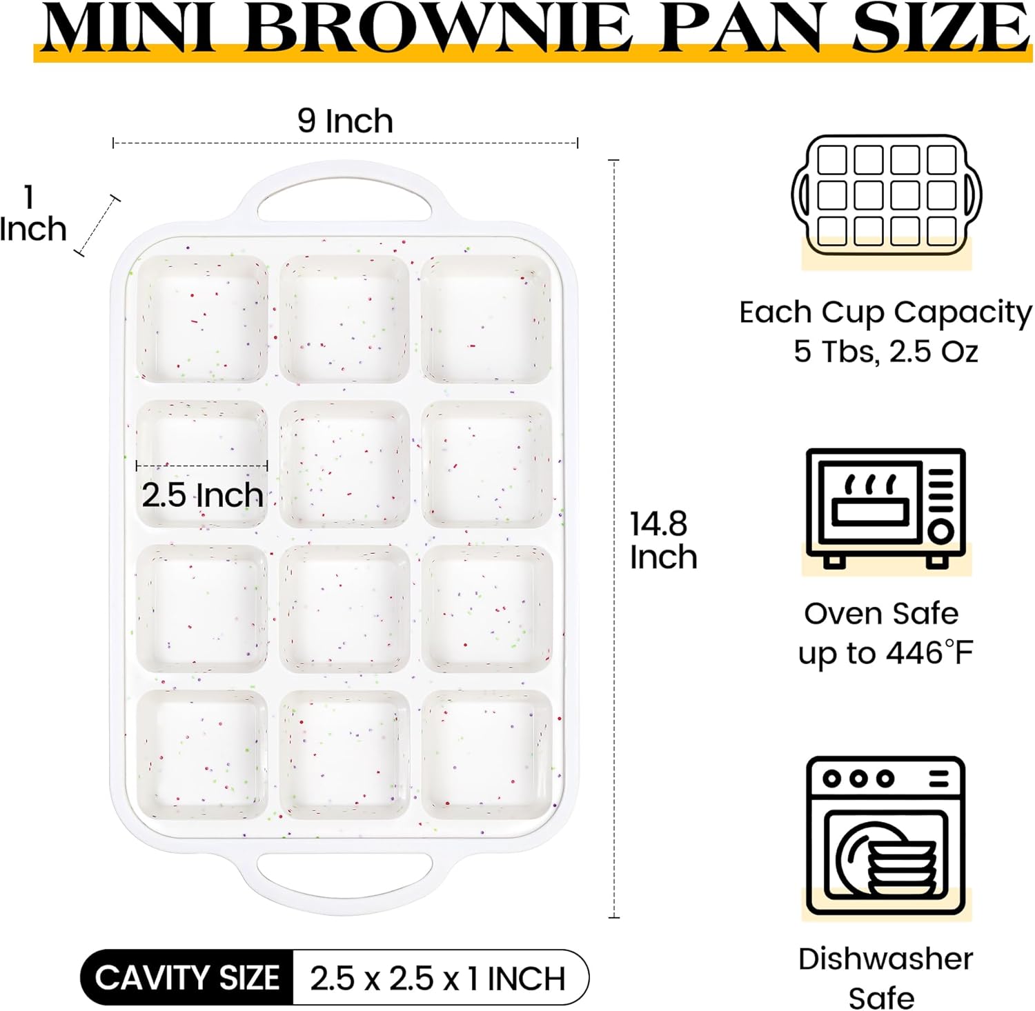 - Excellent Nonstick Performance:Unlike metal and aluminum brownie pans, our mini silicone brownie pan does not require coating to stay nonstick and healthier. It's easy to clean, can be cleaned with hot soapy water or directly in the dishwasher, help making baking easier than ever before