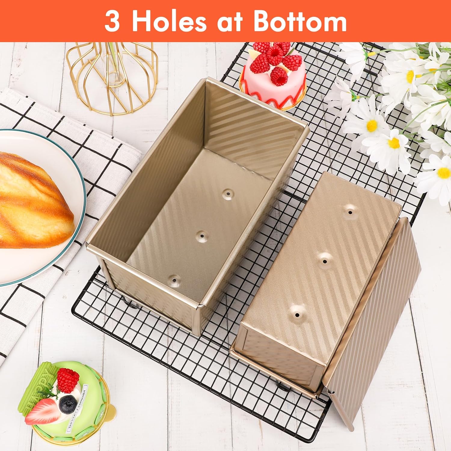 - Bottom Vent Design --- At the bottom of the vent design, there are three holes in the bottom which make uniform baking, good air permeability, is not easy to be burnt. Furthermore, allows the dough to be heated more evenly and has a richer taste. It is a good tool for the home baker, bakeries, restaurants, catering etc. Note: When you need to bake with batter, you’d better add a piece of parchment.