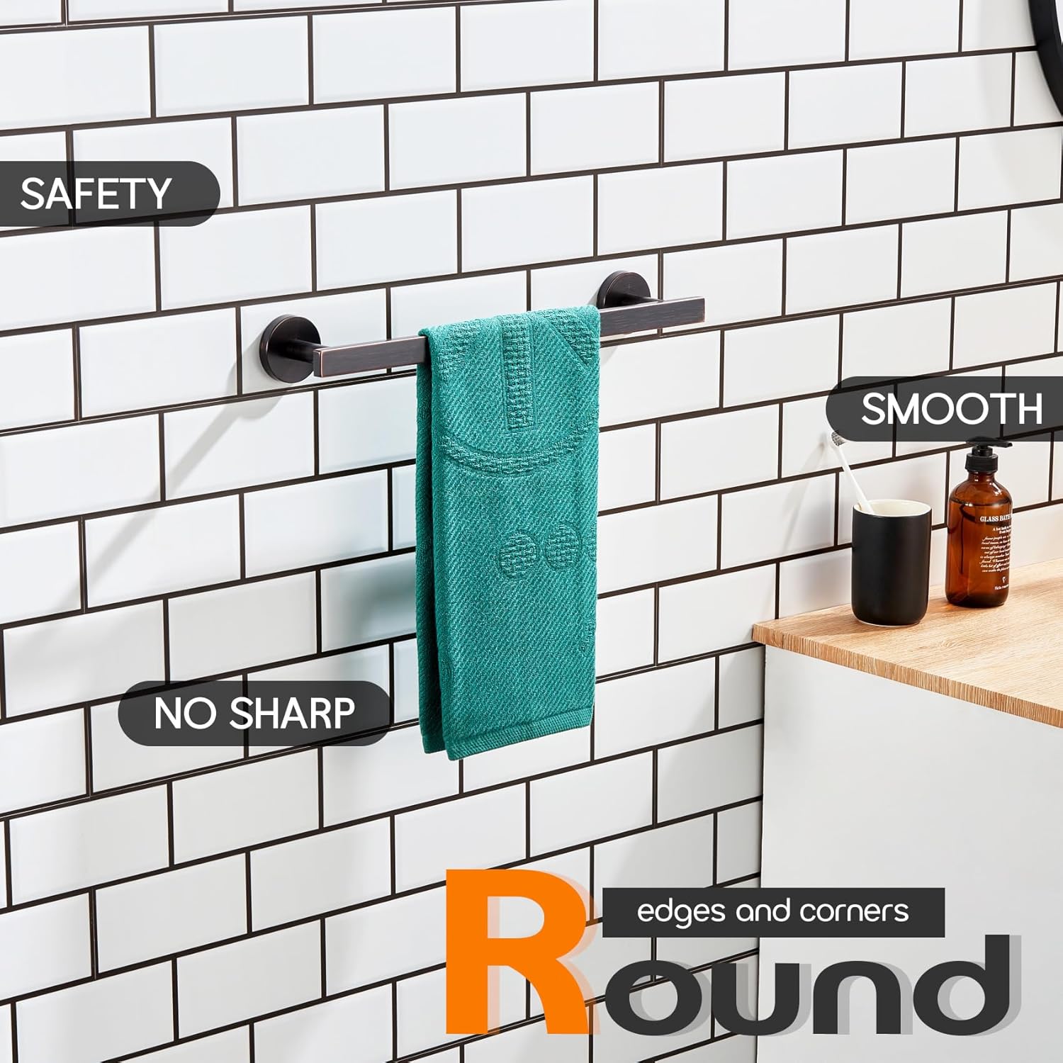 16 Inch Bathroom Towel Bar Bath Towel Rack Kitchen Towel Holder Towel Hanger Wall Mounted SUS304 Stainless Steel Oil Rubbed Bronze AN4001ORB-L16