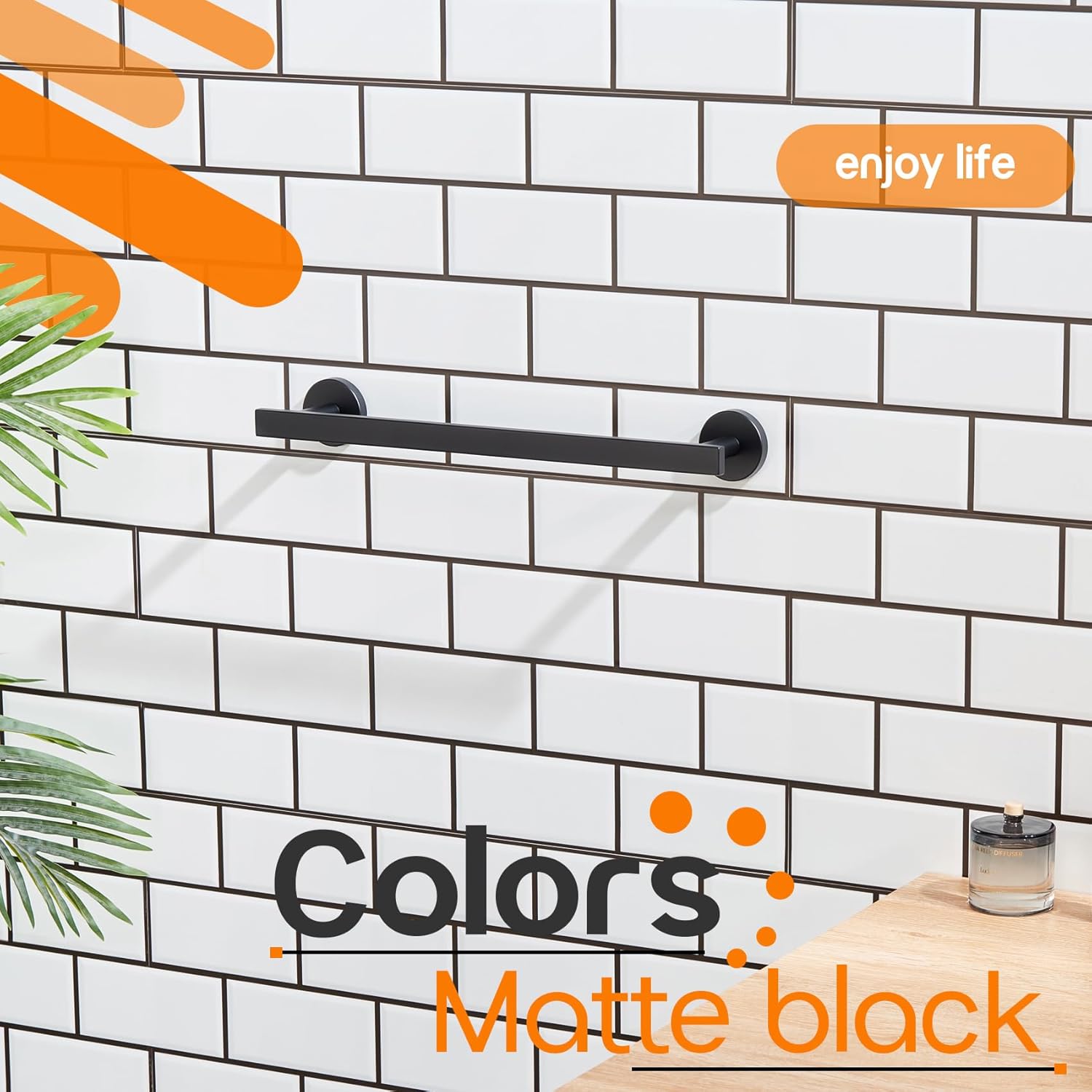 16 Inch Bathroom Towel Bar Bath Towel Rack Kitchen Towel Holder Towel Hanger Wall Mounted SUS304 Stainless Steel Matte Black AN4001MB-L16