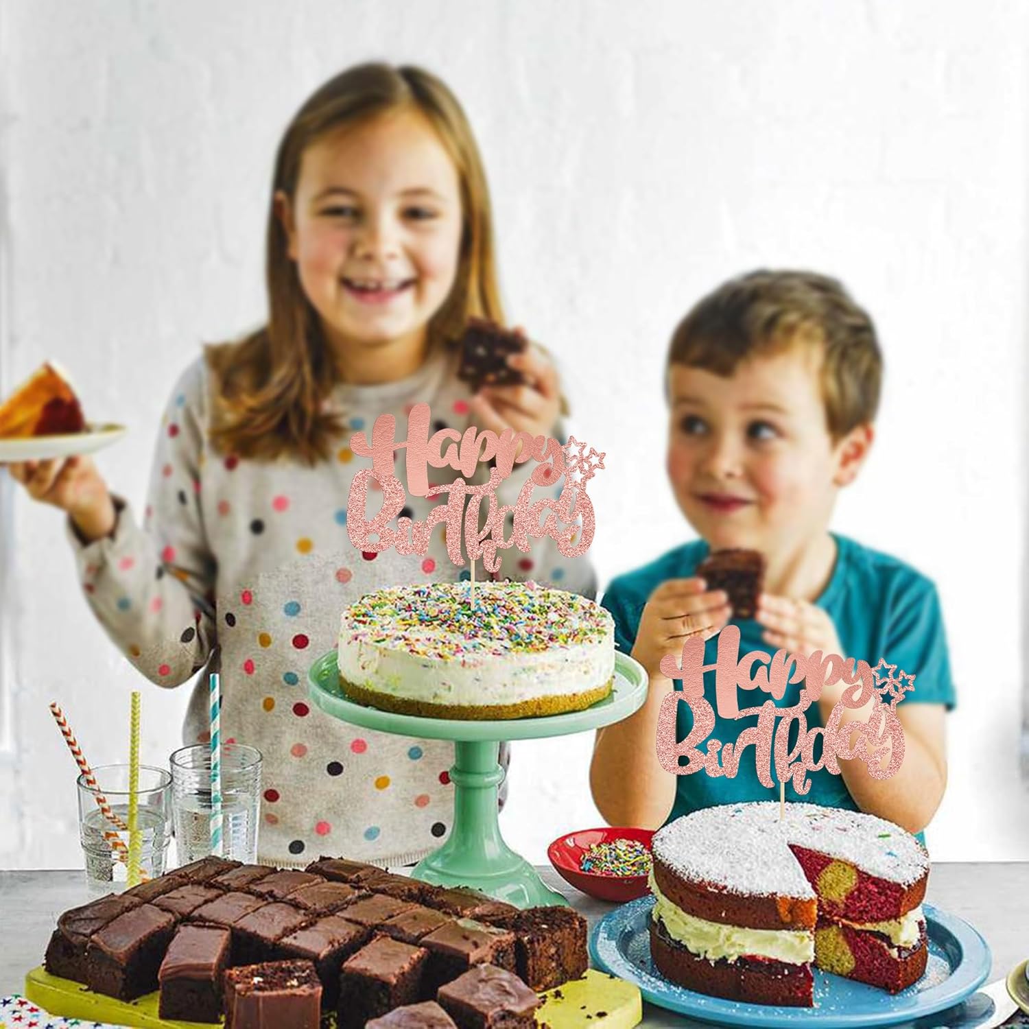 Ephlyn 1Pcs Happy Birthday Cake Topper Glitter Cake Pick for Celebrating Anniversary Theme Party Cake Decorations Supplies Rose Gold