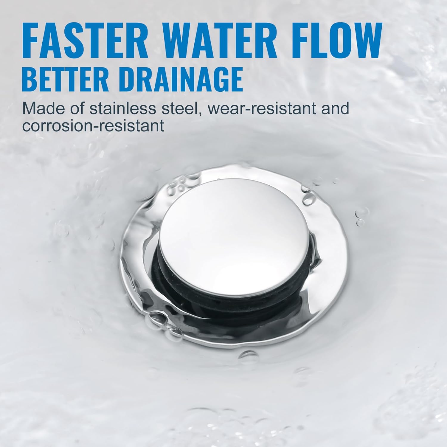 - Pop up drain stopper comes with ultra-thin curved design, not easy to accumulate water fast drainage.
