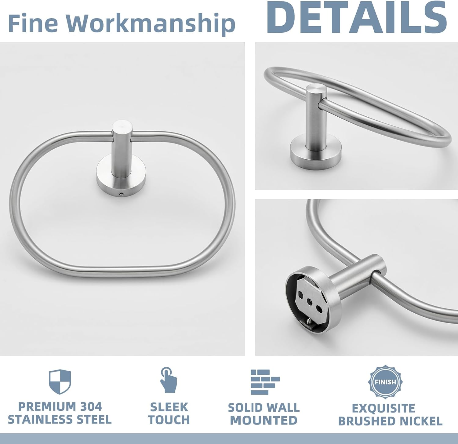 APLusee Oval Towel Ring Brushed Nickel, 304 Stainless Steel Towel Holder for Bathroom Kitchen, Wall Mounted
