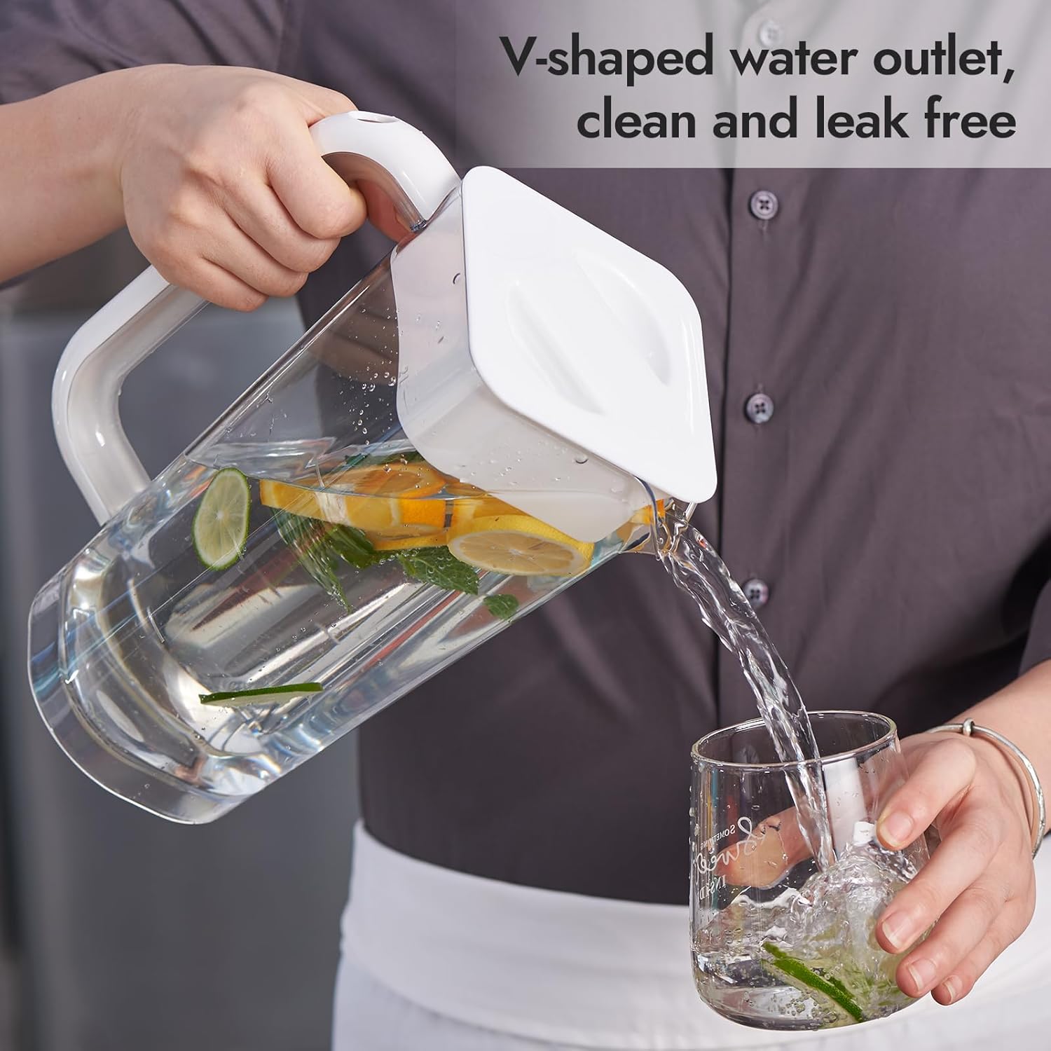 CURTA 2 Pack Plastic Pitcher with Lid, 2L Heavy-Duty Shatterproof Pitchers Clear Water Pitcher with Handle for Lemonade, Coffee,Iced Tea, Milk, Juice, Beverages
