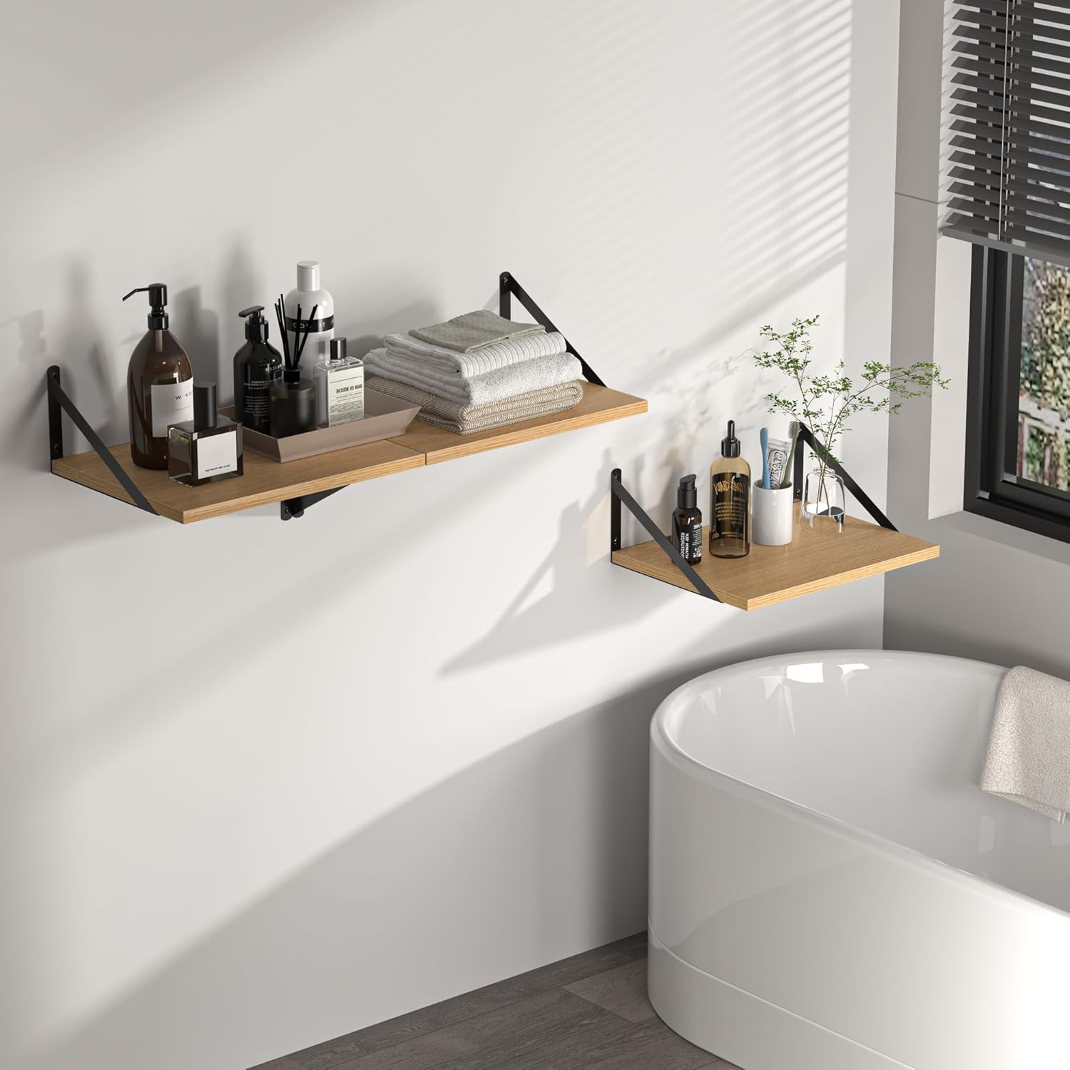 - [Discover More Organization Space] - Don't worry about cluttered desktops and floors! Why not try using the walls? The wonderful combination of smooth-surfaced metal brackets and engineered wood board texture decorates your home with a natural and rustic beauty! Great for organizing books, collectibles, plants, and trophies on the wall without occupying floor space.