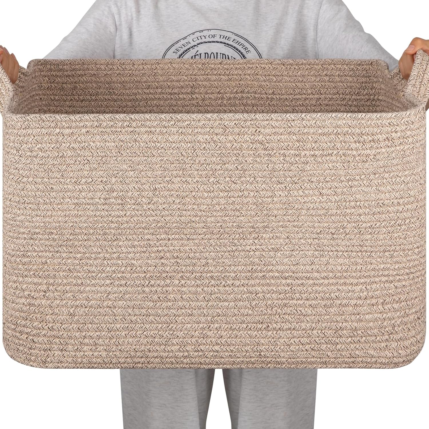 95L Large Storage Basket, Cotton Rope Woven Blanket Basket, Toy Storage for Baby Room, Living Room, 24" x 16.9" x 14.2", Brown