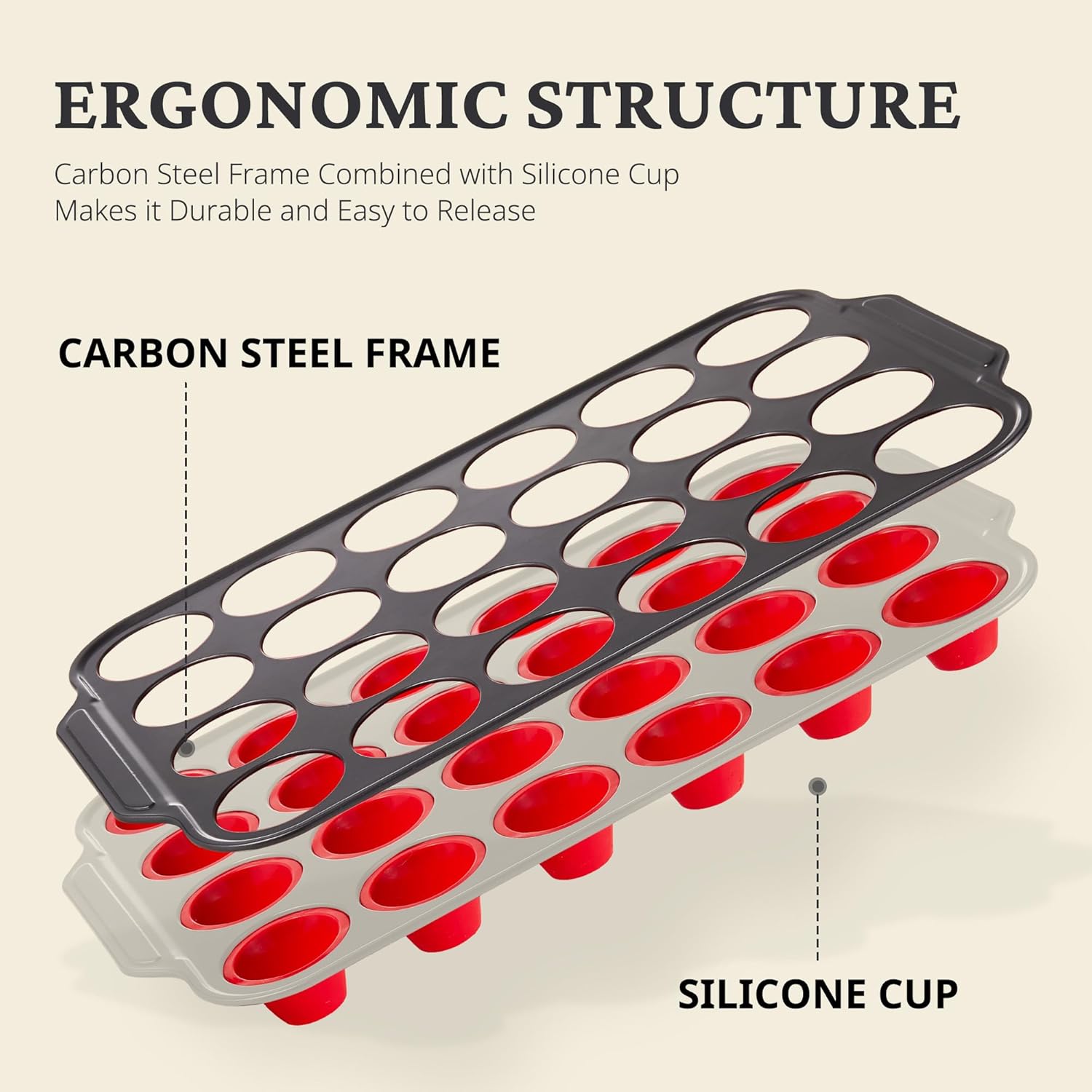 - IDEAL FOR BEGINNERS - Unlike traditional silicone muffin pans, our silicone pan with a metal frame retains all the advantages of easy-release while offering the stability and durability you need. It doesn't require a baking sheet for support and fits standard recipes perfectly.
