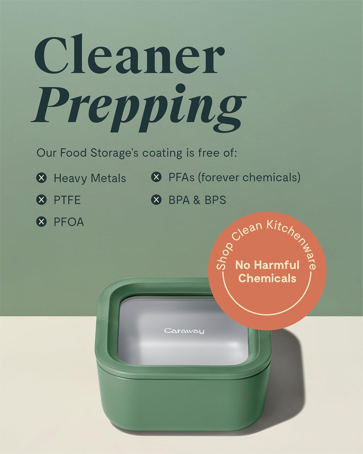 - KEEP YOUR FOOD FRESH: Look forward to leftovers with Caraway’s easy-to-store, non-toxic food storage containers. These 4.4 cup glass containers were designed to be displayed and keeps your food fresh & organized.