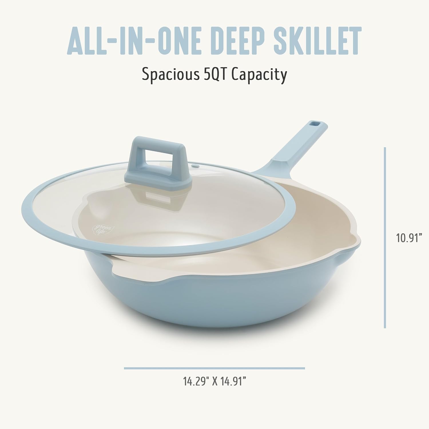 GreenLife Nonstick 12” (5QT) All in One Deep Skillet Wok with Lid, PFAS-Free Non-Toxic Ceramic Multi-Purpose Pan, Induction, All Stovetop, Egg, Stir Fry, Saute, Stay Cool Handle, Blue Haze