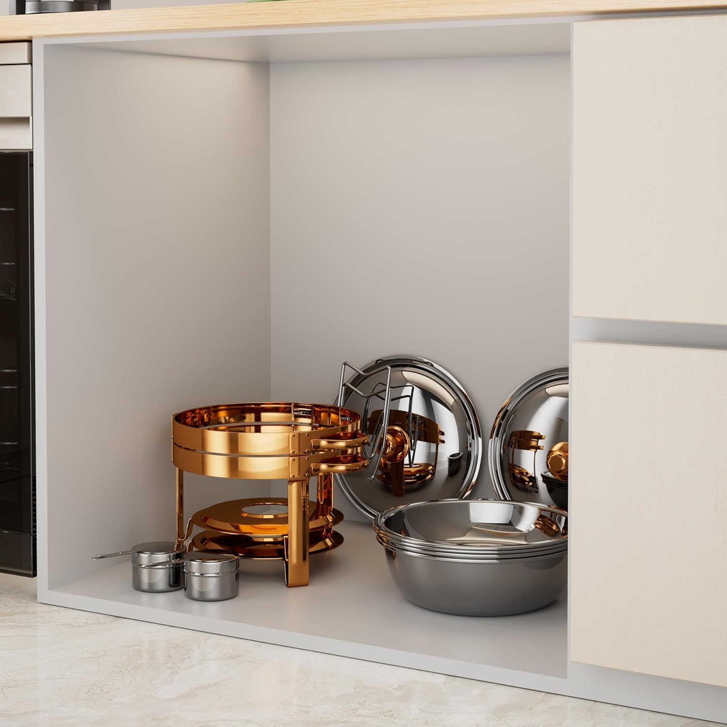 - [Superior Food Insulation]: KScocina round chafing dish buffet sets are crafted from high-quality stainless steel, providing exceptional food warming capabilities and durability. Utilizing advanced water vapor circulation, these chafing dishes keep your food warm and fresh for any occasion. Available in three stunning colors: gold, silver, and rose gold.