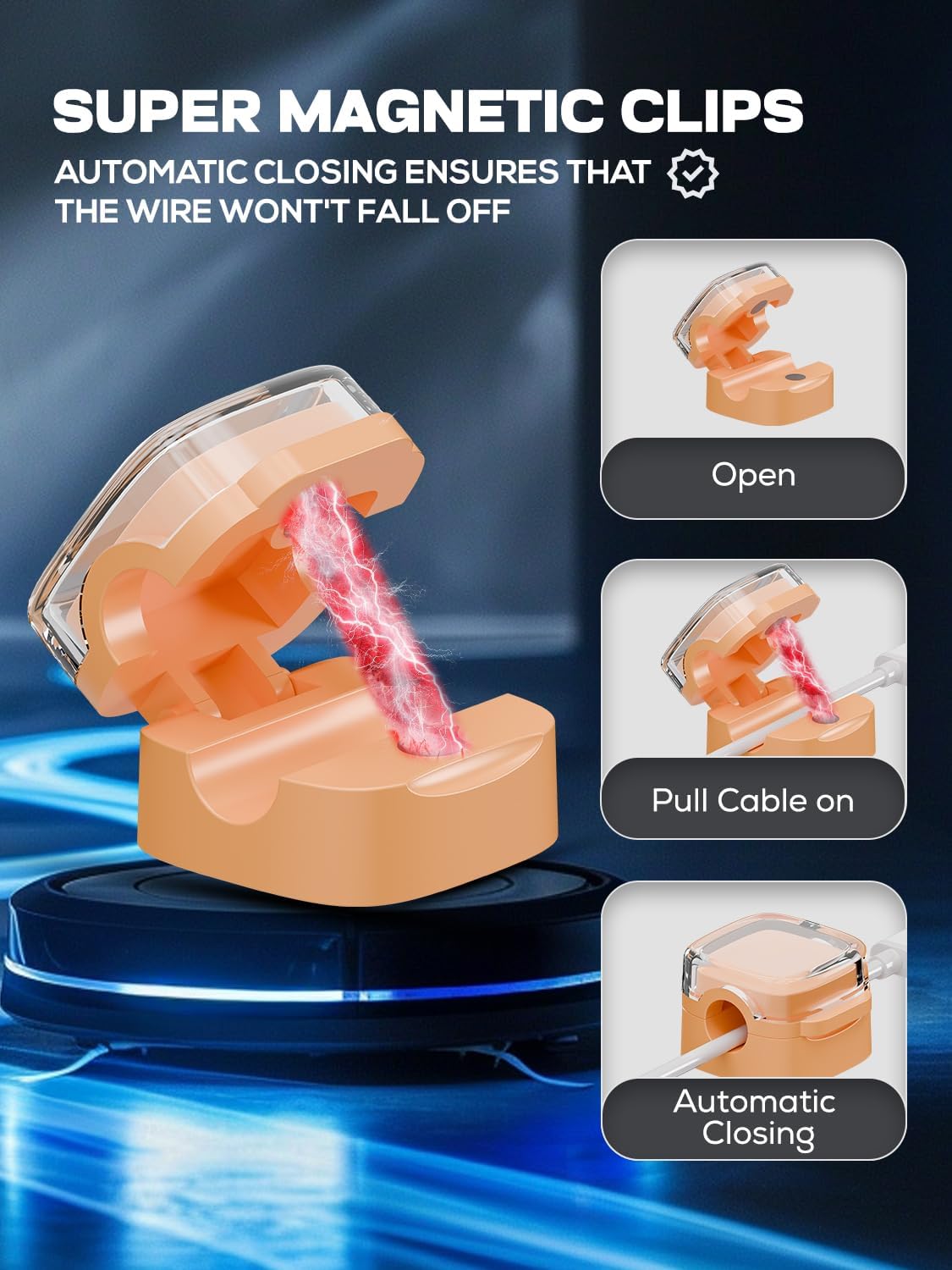 - 【Fits Every Cable Type】:- From charging wires, HDMI cables to thick electrical wires our cord holder for desk works with all your devices. The magnetic cord organizer provides unmatched cable compatibility. The cables retract back into cable holders freely after use