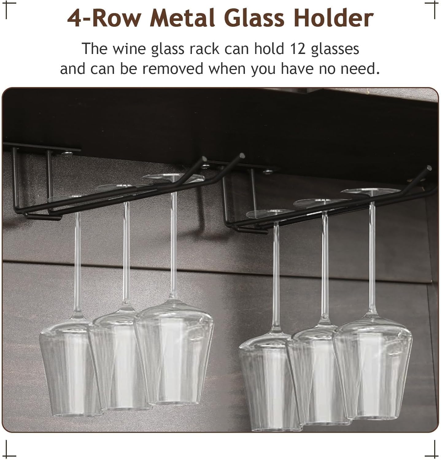 - [Extra Storage Coffee Bar Cabinet]: This coffee bar has extra storage shelves to increase storage space compared to the classic traditional. It has a top storage shelf which can storage and display. And the 6 hooks on the iron tube of the shelf can easily hang your cups, or other things you want