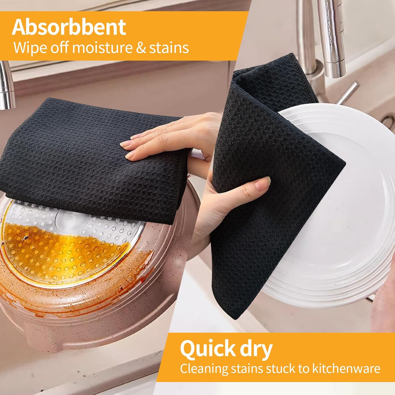 KinHwa Kitchen Washcloths for Dishes Absorbent Microfiber Dish Cloths Quick Dry Dish Rags with Poly Scour Scrub Side Ideal for Kitchen Cleaning (Black-T, 15inchx27inch 6 Pack)