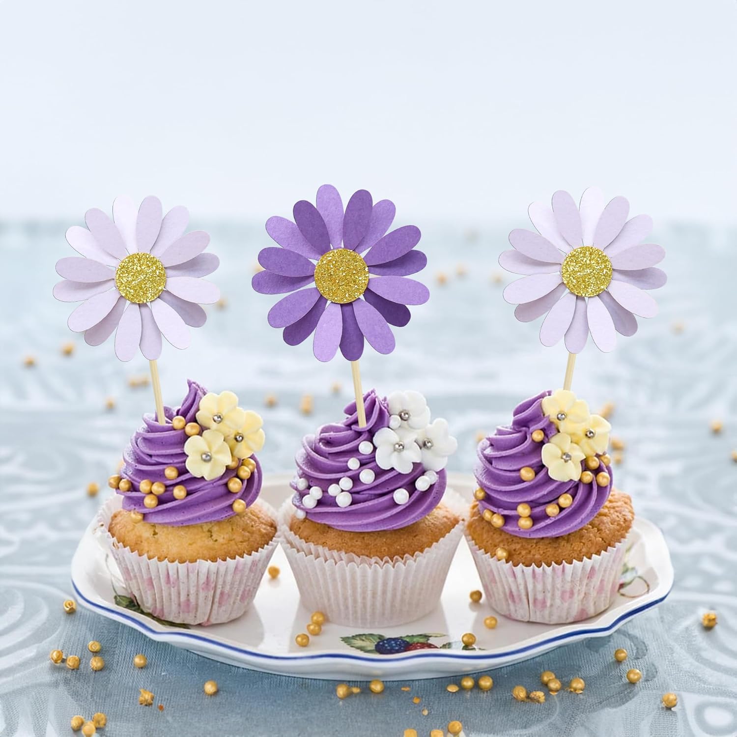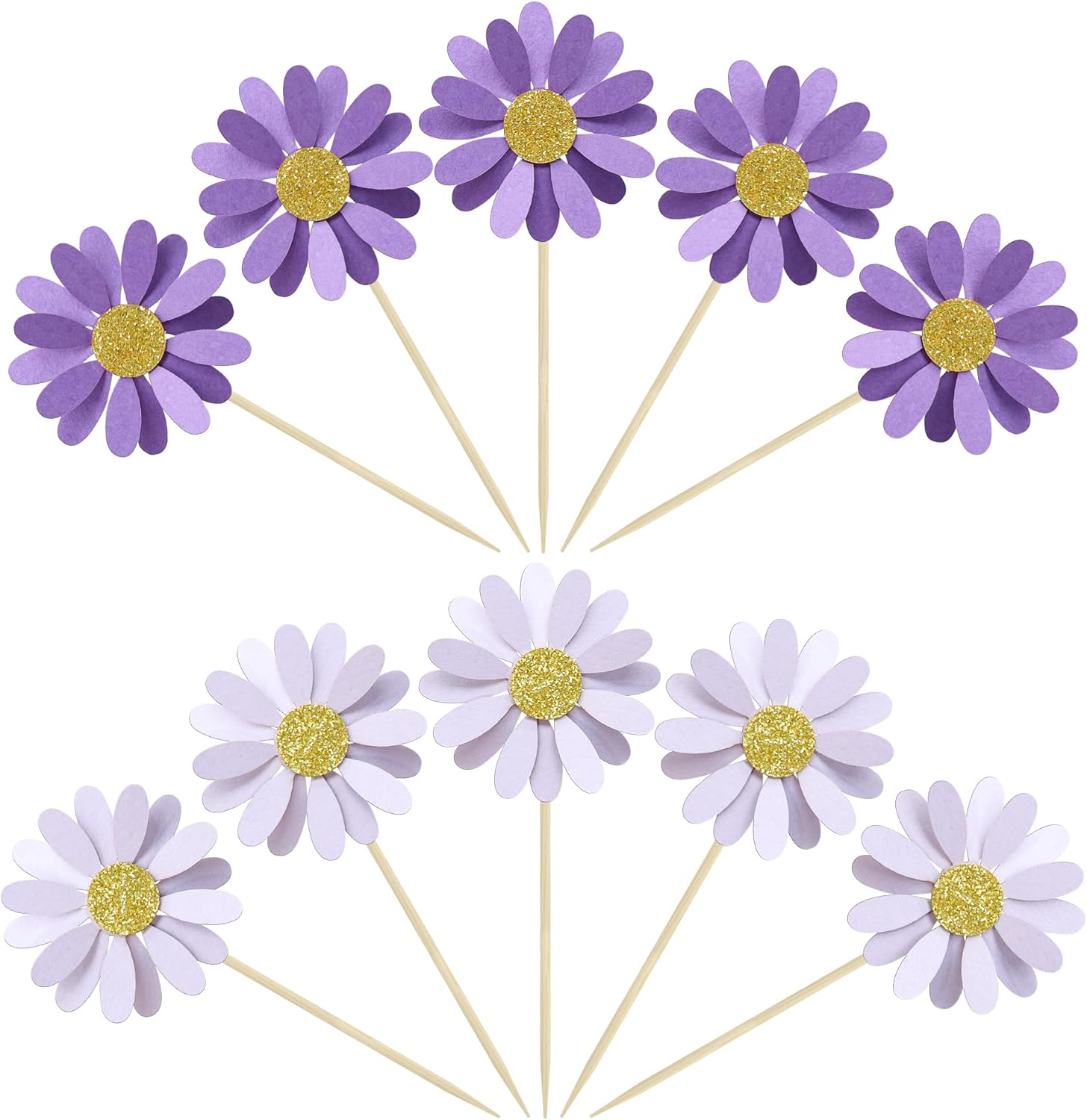 - 【Upgrade Quality】: 24Pcs Daisy Flower Cupcake Toppers are made of 300g card stock and 100% food grade bamboo stick, not easy to deform and fade, smooth edges without burrs, makes Daisy Flower cupcake toppers give you a wonderful visual enjoyment. It is durable enough for long lasting use.