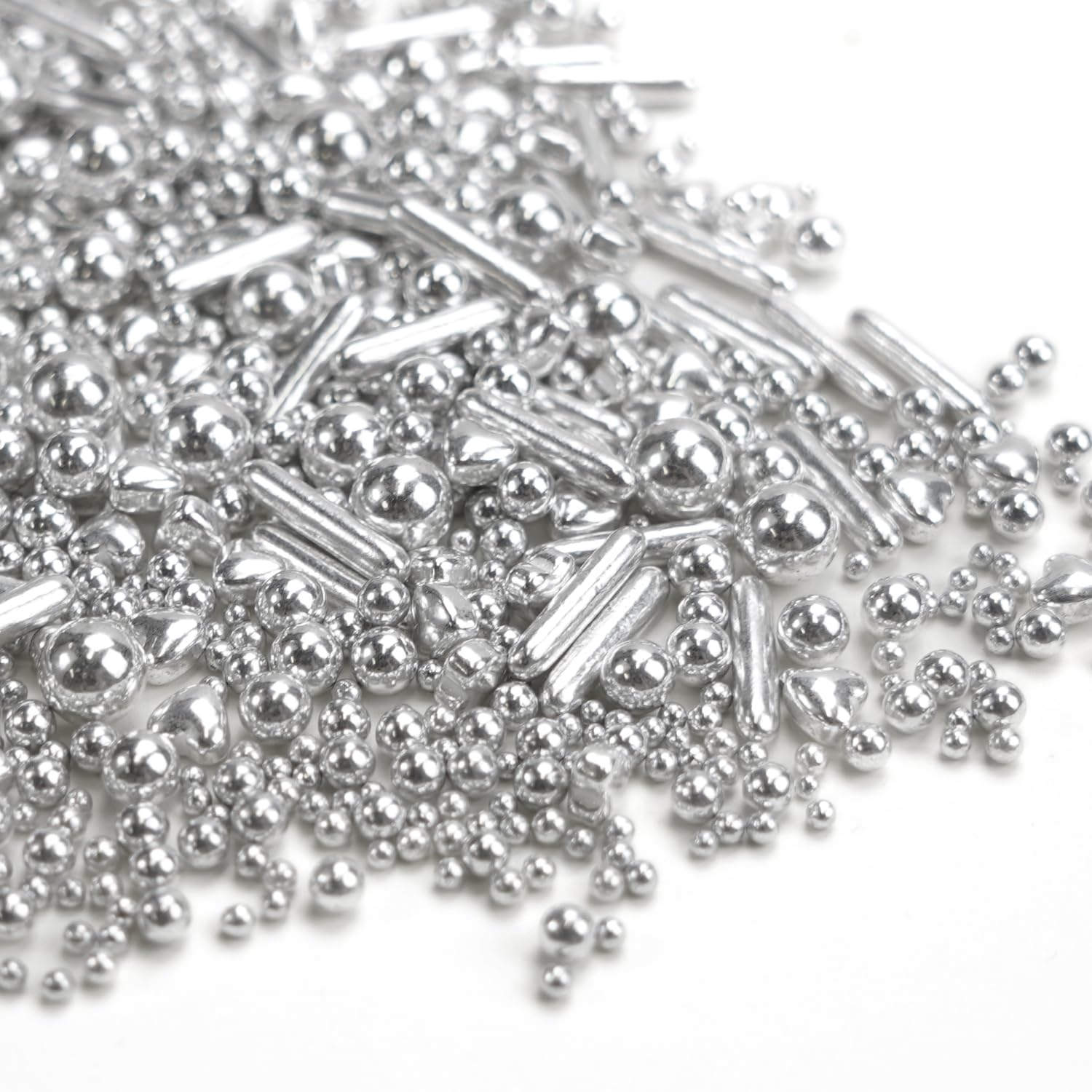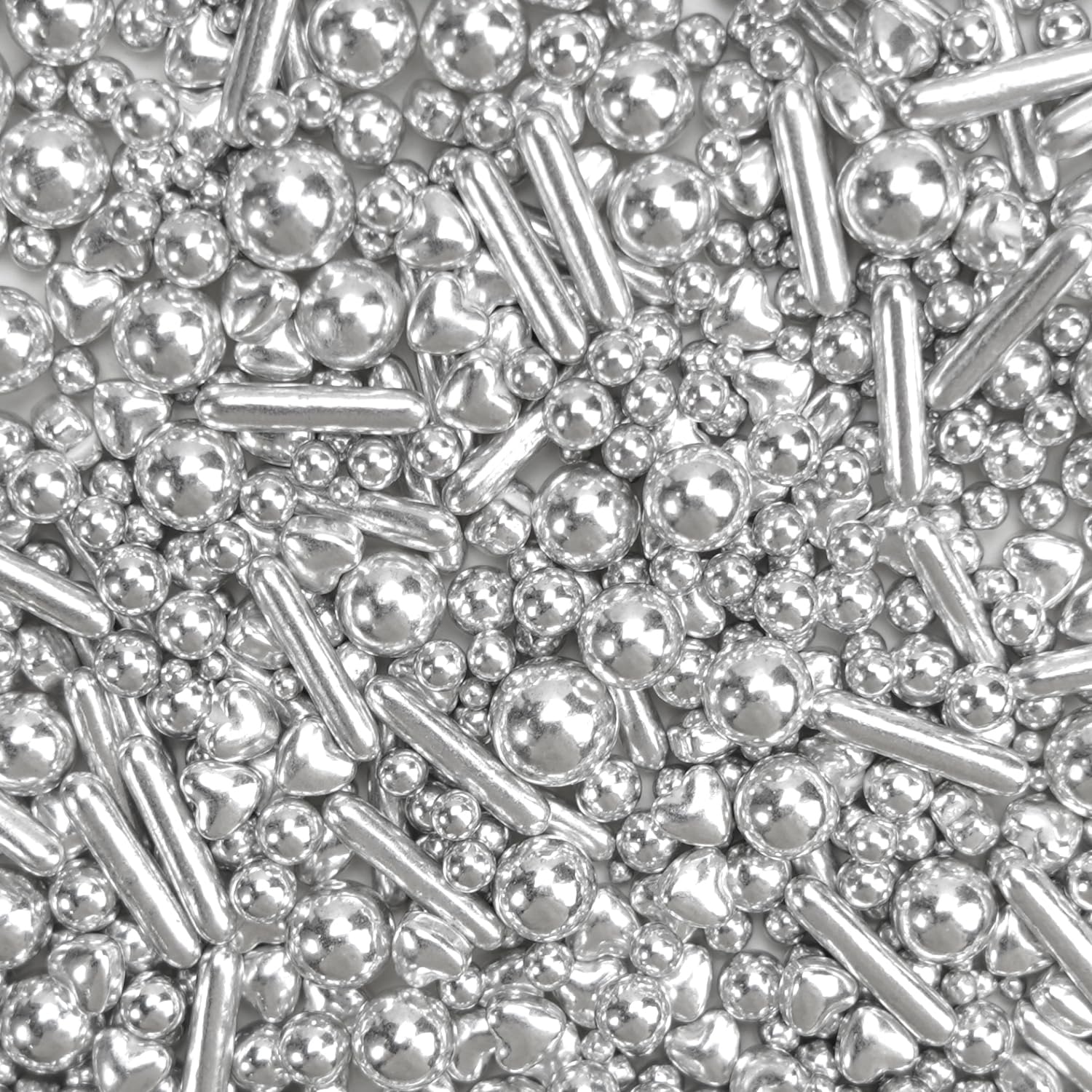 Dazzjoy Edible Silver Pearl Heart Rods Sprinkles, 130g/4.58oz, Mix Size, Silver Pearl Sprinkles for cupcake decorating, Cupcake Toppers Cake Decorations