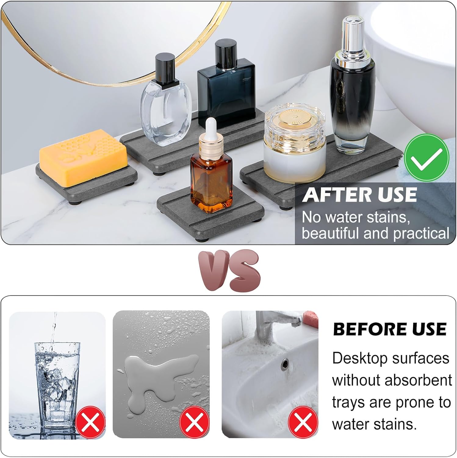 4PCS Stone Drying Trays for Bathroom Sink and Kitchen Counter, Water Absorbing Stone Tray with Diatomaceous Earth, Soap Dish and Coaster