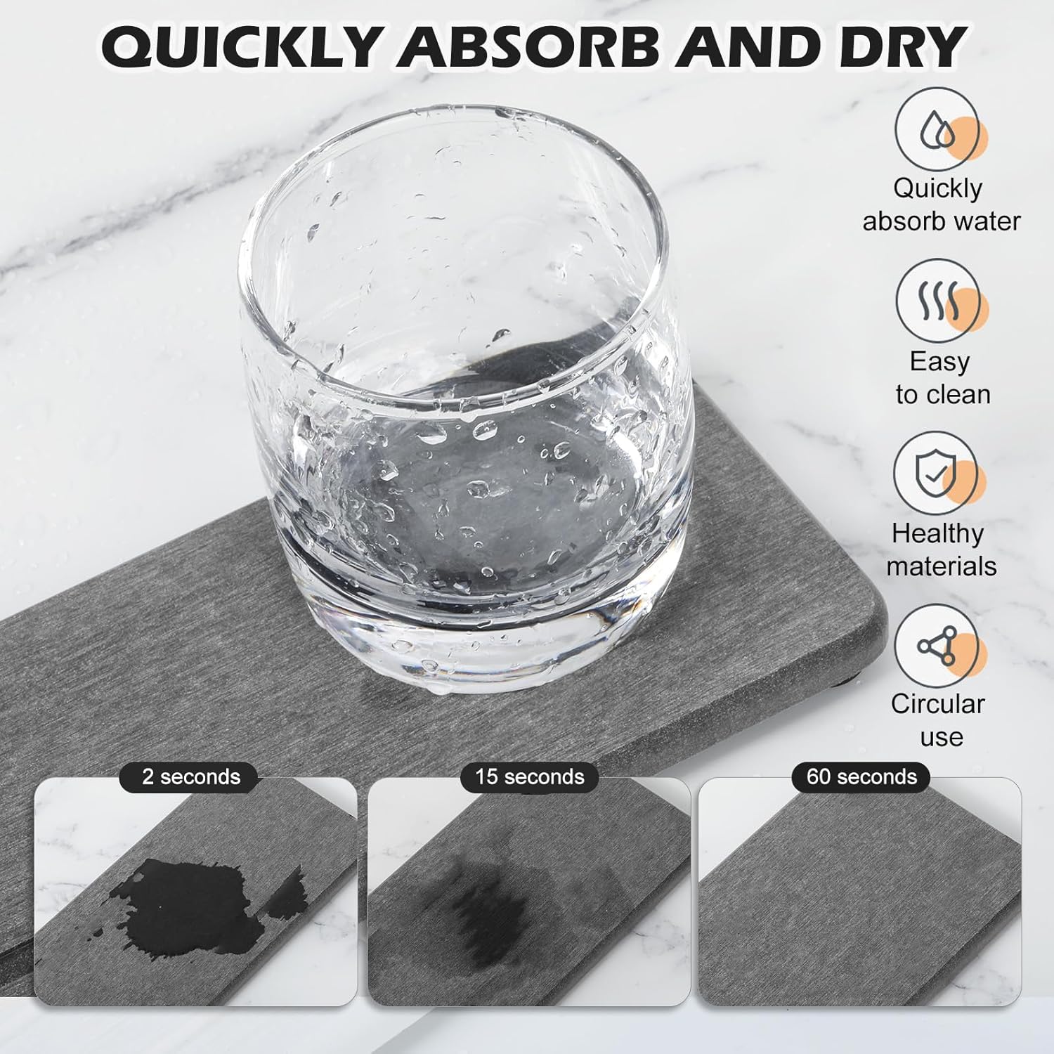- Quick Water Absorption and Fast Drying --- Our fast drying stone sink tray is made from natural diatom mud and plant fibers,the small pores in diatomaceous earth give it amazing water absorption.They can absorb water and dry out in a few minutes.This water absorbing stone makes the bathroom countertop more dry and tidy.