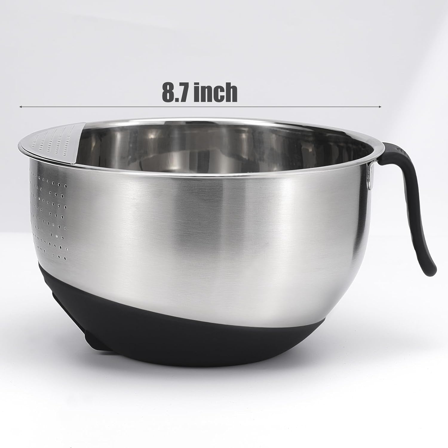 - Quick Drainage Colander Strainer: Equipped with fine drainage holes on the side, this stainless steel washing bowl ensures quick water drainage while preventing food from falling through.