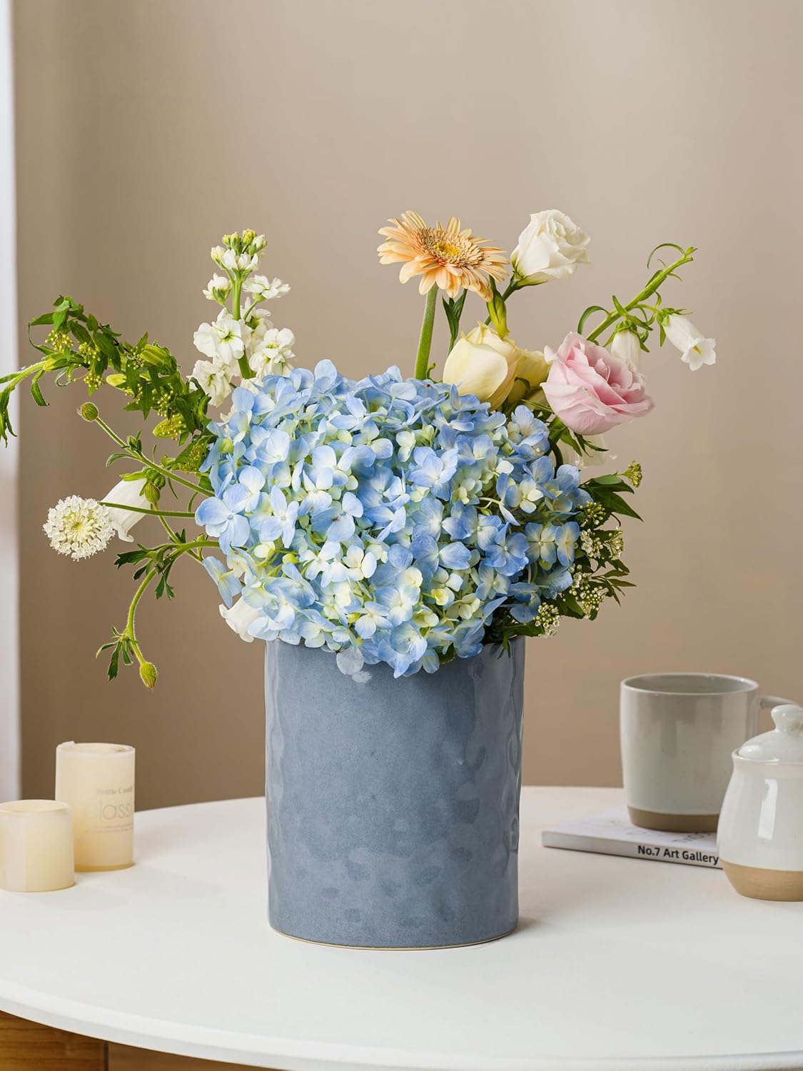 famiware Ocean Utensil Holder, 7.2"+5.8" Ceramic Kitchen Utensil Holder for Countertop, 2 Pieces Cooking Utensil Crocks, Utensil Organizer for Spatula & Spoon, Kitchen Decor, Set of 2, Blue