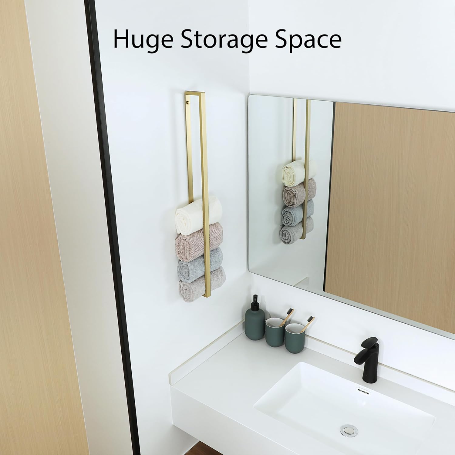 - 【Brushed Gold Finish】The towel holder is finished by dazzling gorgeous golden and sealing glaze, beautiful color, not easy to oxidize and fade; The shiny look makes it a focal point everywhere, and is also perfect for a variety of bathroom finishing styles.