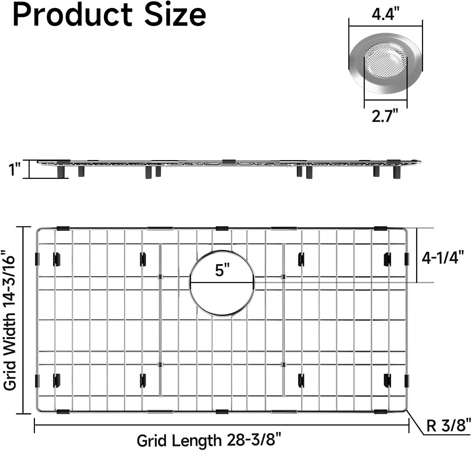 28-3/8’’ x 14-3/16’’ Stainless Steel Sink Grid, Sink Protectors for Kitchen Sink, Sink Protector with Rear Drain for Single Sink Bowl, Sink Bottom Grid, Sink Grate for Bottom with Sink Strainer