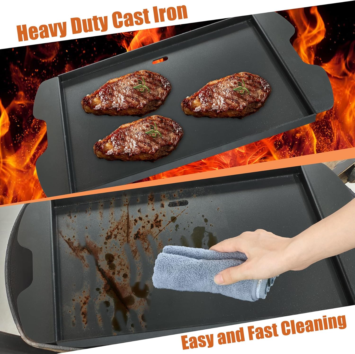 - EASY TO USE: This flat top griddle has raised sidewalls to prevent food from falling, and polished edges to avoid scratches. Washing with a mild soap and then wiping with oil afterward enhances and maintains the nonstick surface of your flat griddle, reduces scrubbing time, and makes post-cooking cleanup a breeze