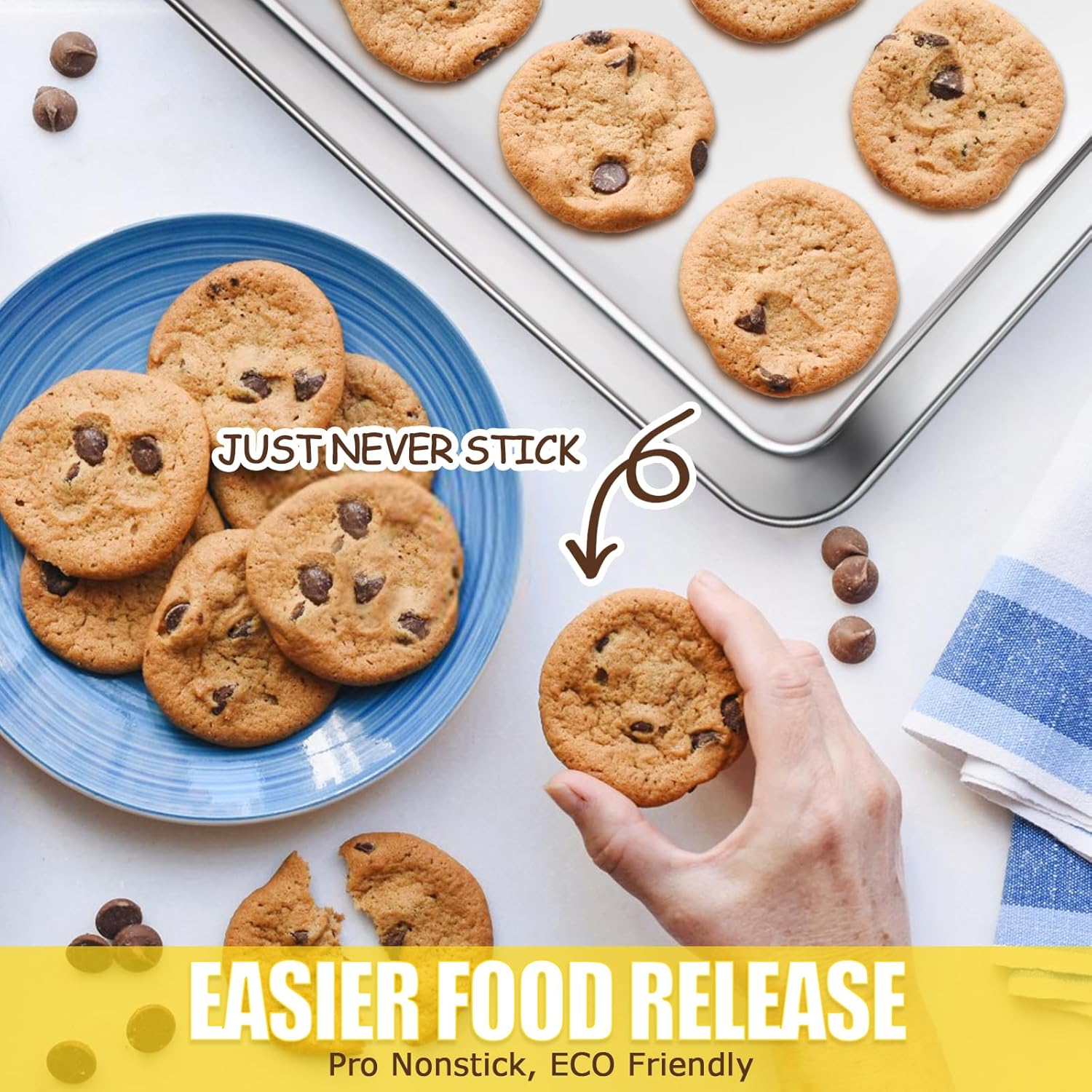 - 【MULTI USE】Includes two 17.3 x 12.3 x 1 inch baking sheets fits most regular oven, toaster oven and some air fryer. Perfect cookie sheets for baking dozens of cookies, bread and cakes, roasting vegetables, meats, chicken, bacon or crisp up foods in your oven.The possibilities are endless!