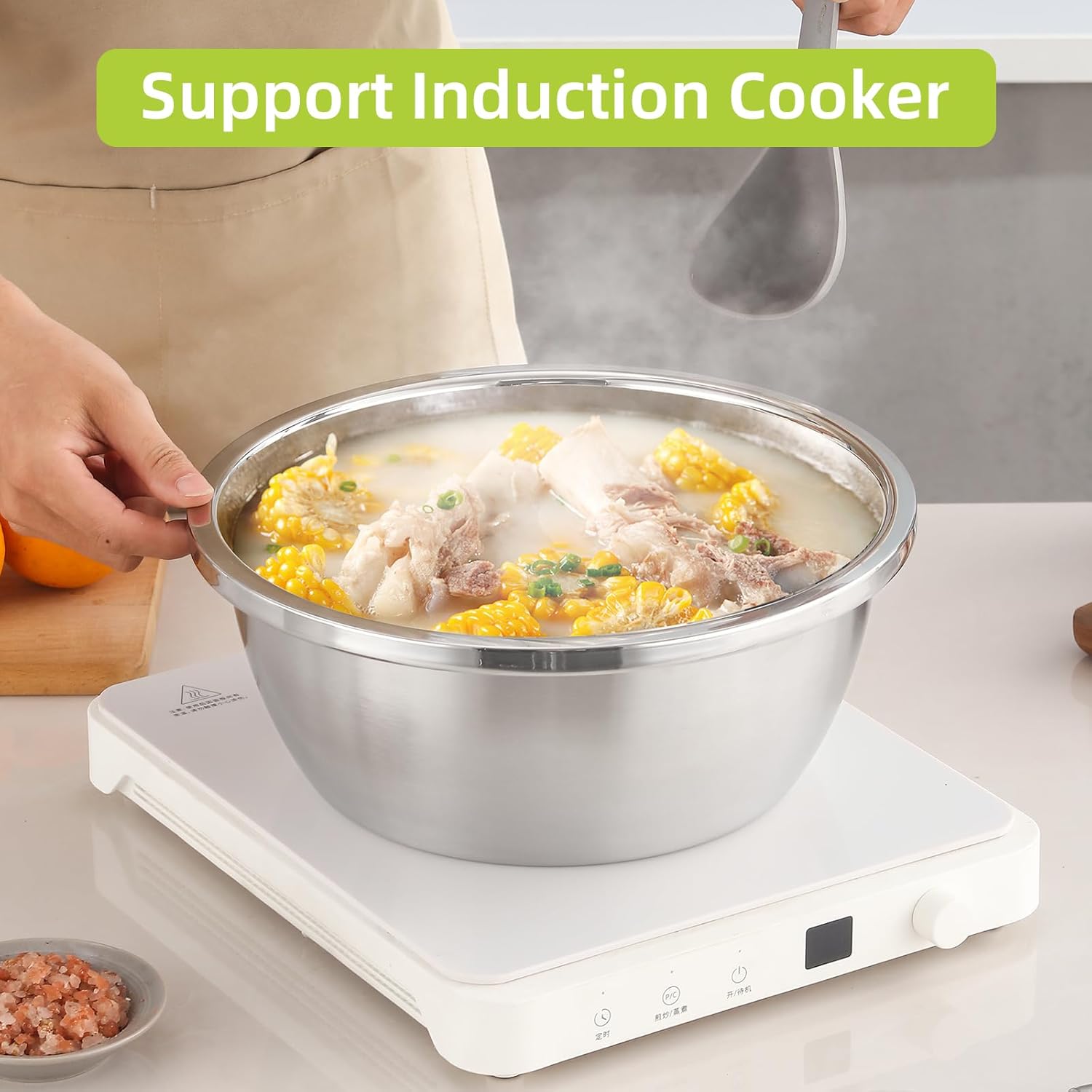 - SUITABLE KITCHEN DIMENSION: Holds 5 quart items. The combination of the stainless steel strainer and mixing bowl makes it easy to clean and prepare food, becoming an indispensable tool in your kitchen