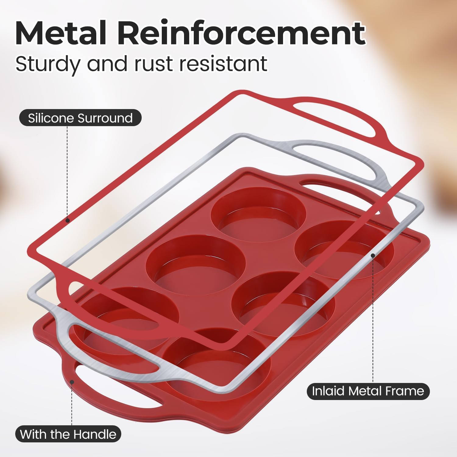 - Metal Reinforced Silicone Muffin Top Pan: The hidden stainless steel frame around the outer edge makes silicone egg molds more sturdy