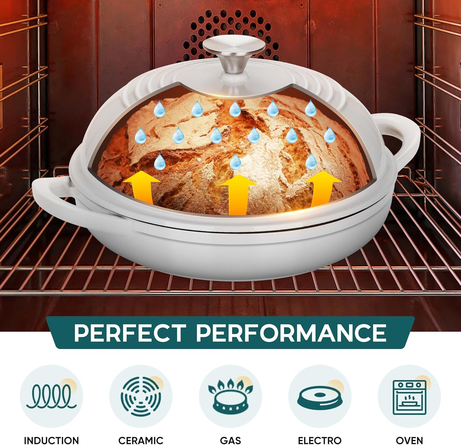 - COMPATIBLE WITH STOVETOP & OVEN USE: This versatile bread oven can also be used as a frying pan for steak, veggies, and casseroles, Safe for all stovetops, including gas, electric, ceramic, and induction, Oven-safe up to 500℉(260℃), Hand wash recommended