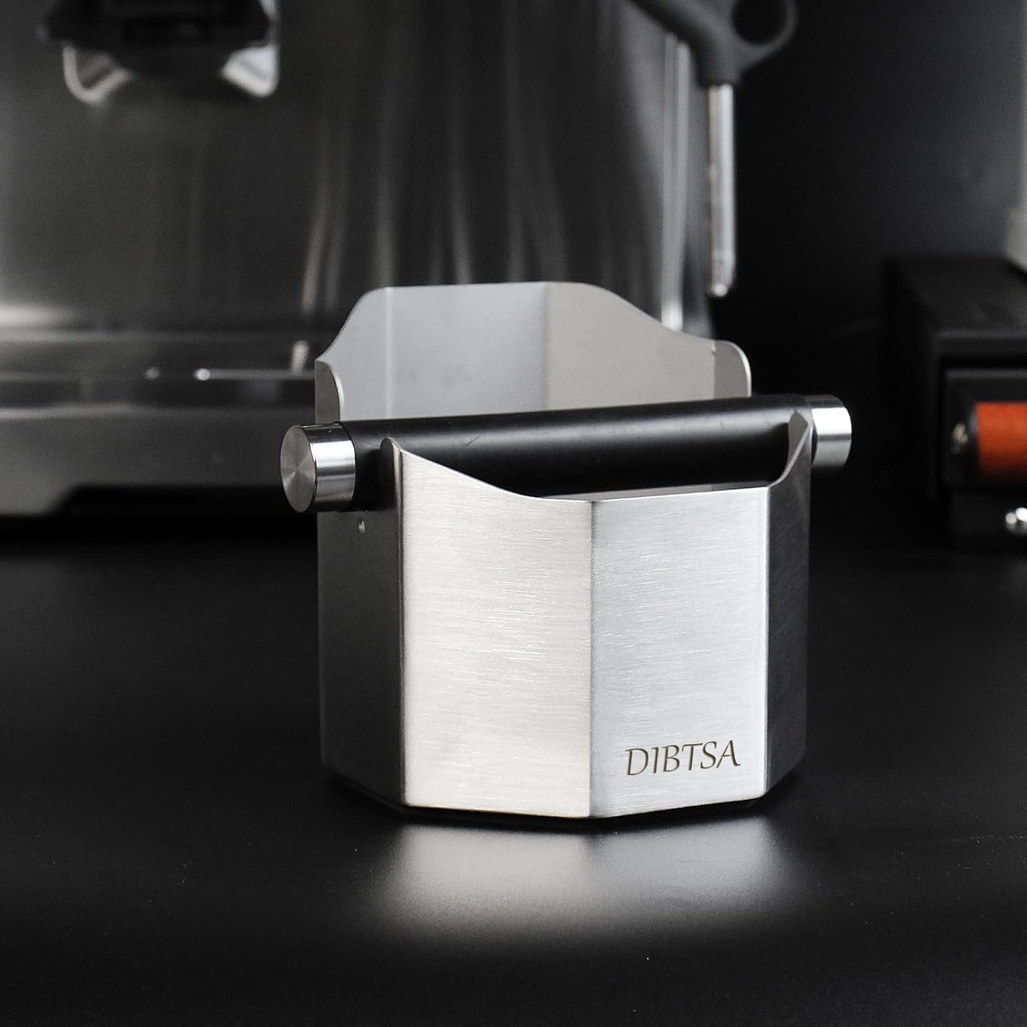 DIBTSA Espresso Knock Box, with Removable Knock Bar and Non-Slip Rubber Base, Espresso Accessory, Stainless Steel, Silver, Small