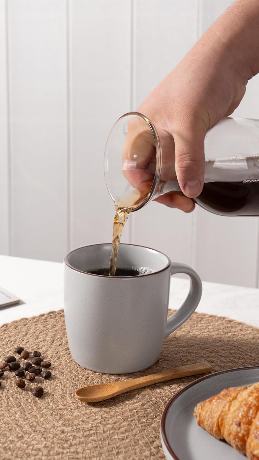 famiware Mercury Coffee Mugs 13 oz, Coffee Mugs Set of 6 with Handle, Cups for Latte, Hot Tea, Cappuccino, Mocha, Cocoa, Light Grey