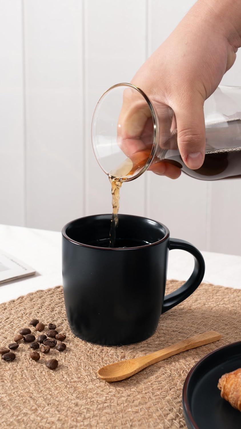 famiware Mercury Coffee Mugs 13 oz, Coffee Mugs Set of 6 with Handle, Cups for Latte, Hot Tea, Cappuccino, Mocha, Cocoa, Black