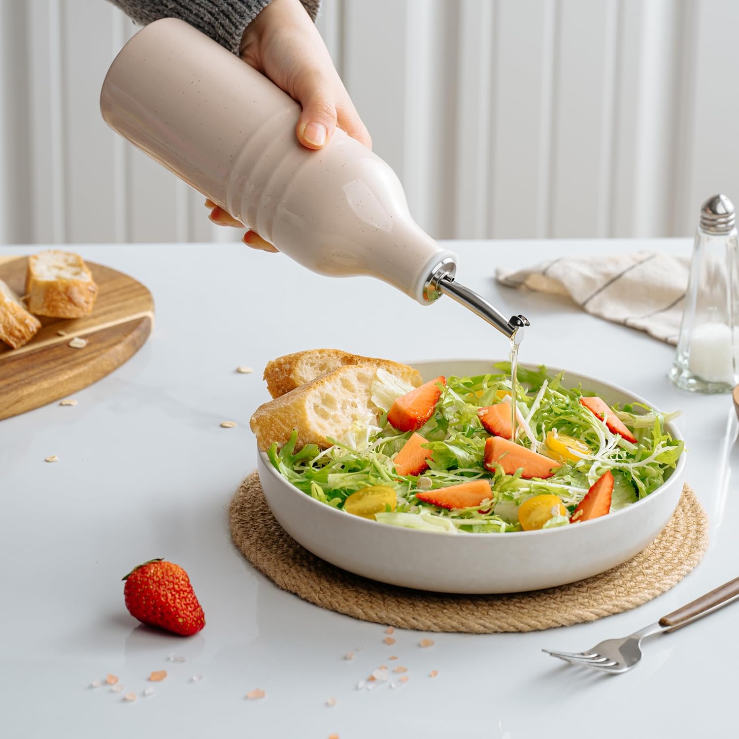 - ELEGANT OLIVE OIL DISPENSER BOTTLE - Our 16-ounce ceramic oil dispenser is handmade and batch-fired at extremely high temperatures, forming a smooth glaze and providing a resilient